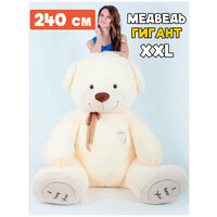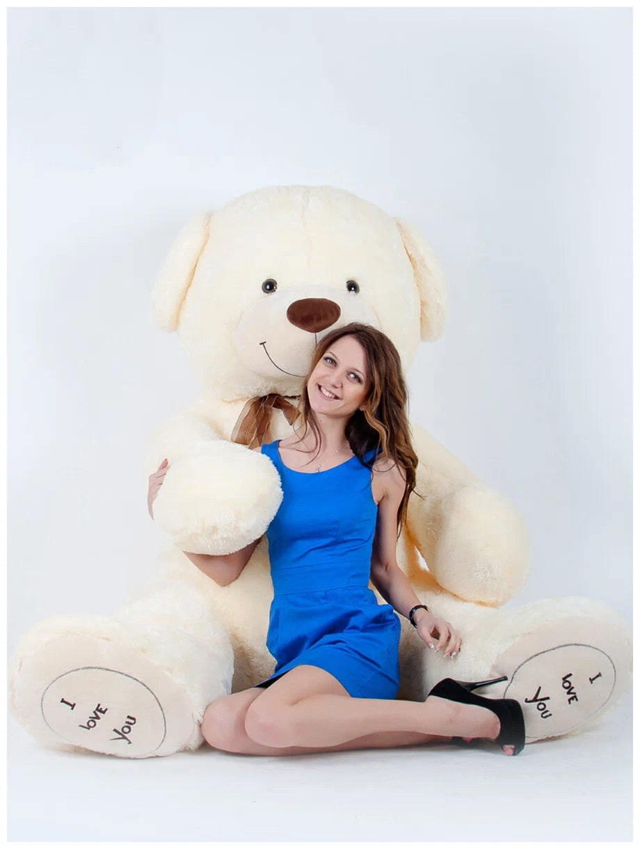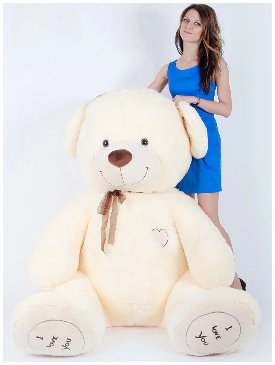 Большой и мягкий плюшевый медведь игрушка тима 240 СМ молочного цвета. С сердечком на груди и надписями на лапках "I Love You". Прекрасно подойдет в подарок для любимого человека. На день рождение, новый год, 14 февраля, 8 марта, день святого Валентина, свидание и просто так.