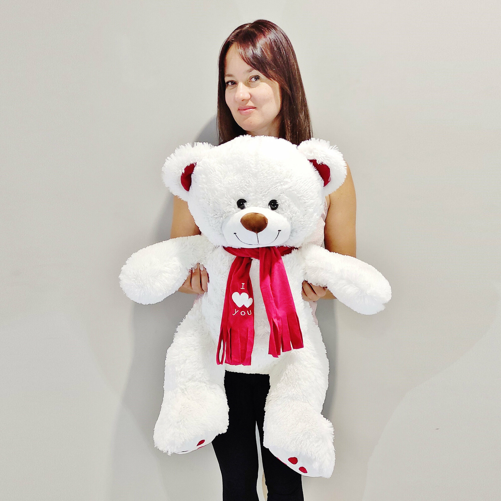 Купить Большой плюшевый медведь, мишка, мягкая игрушка Кельвин 90 см, белый с доставкой по всей России.