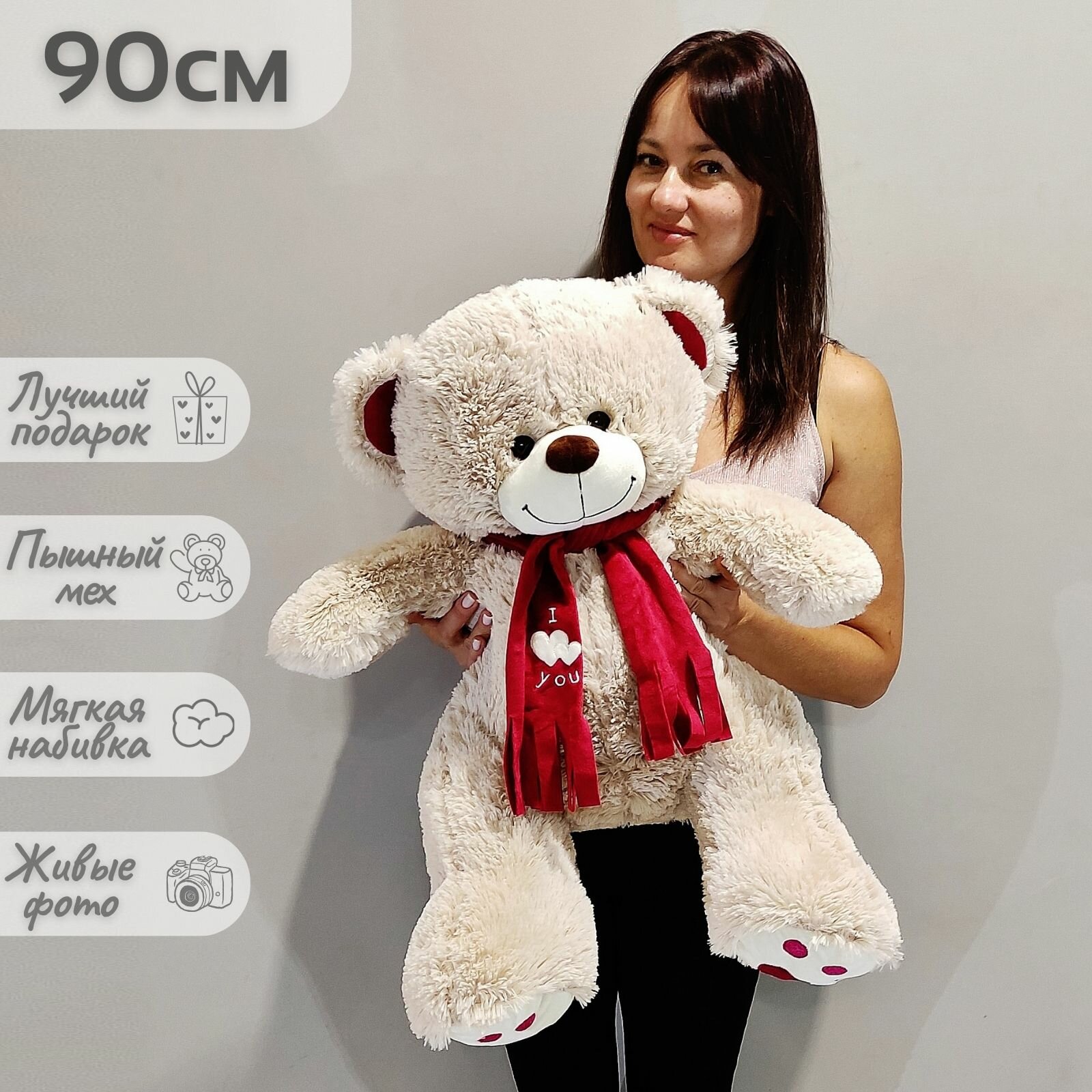 Большой плюшевый медведь, мягкая игрушка мишка Кельвин 90 см, серый кремовый: сравнение цен, характеристики, фото, актуальное наличие и цены.