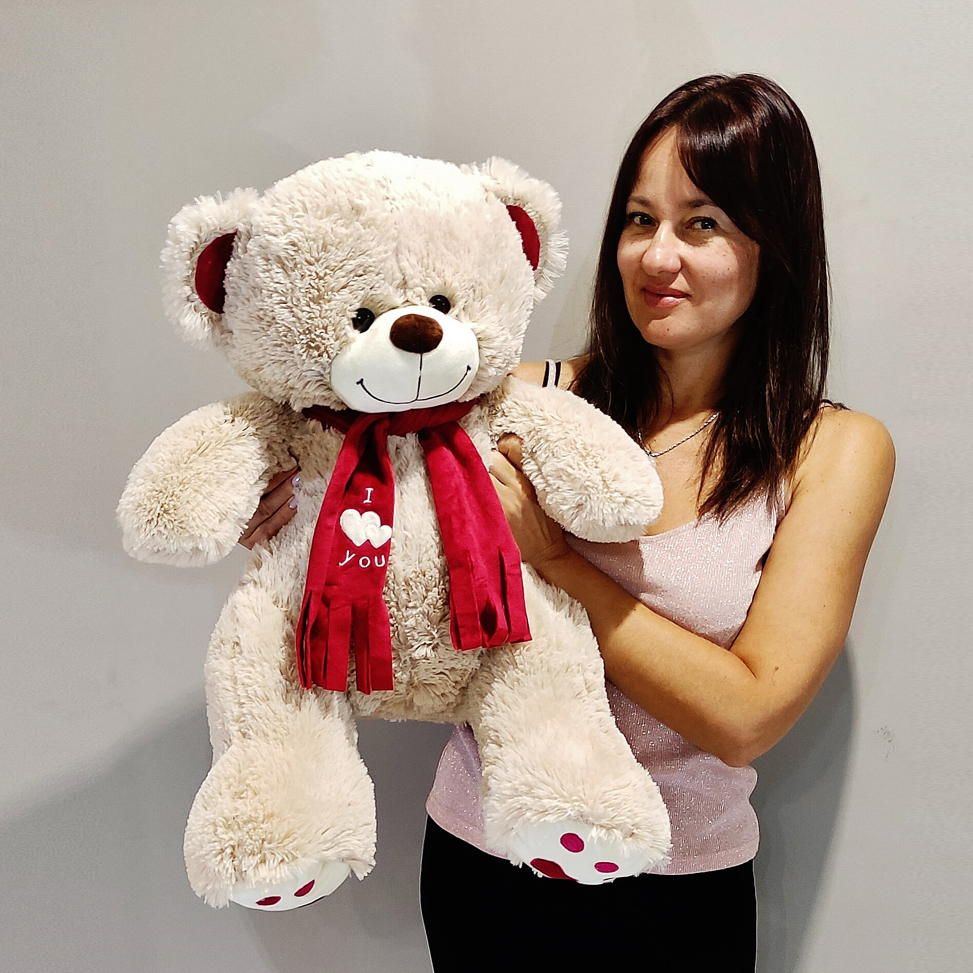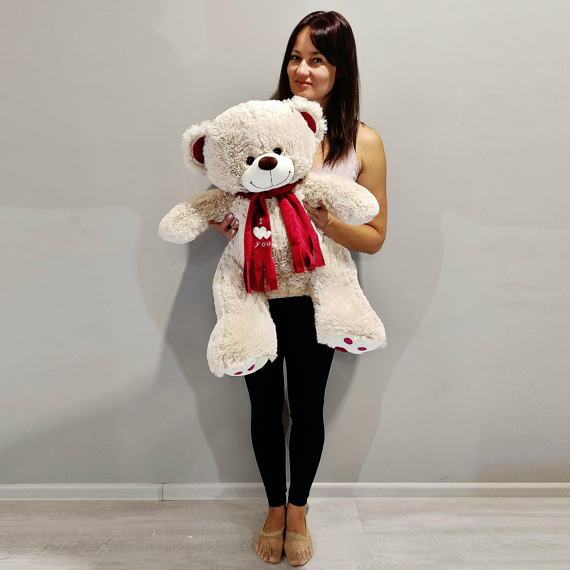 Купить Большой плюшевый медведь, мягкая игрушка мишка Кельвин 90 см, серый кремовый с доставкой по всей России.