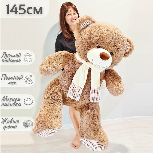 Купить Большой плюшевый медведь 145 см, мягкая игрушка мишка Тоффи, коричневый (140 см + 5 см в подарок) с доставкой по всей России.