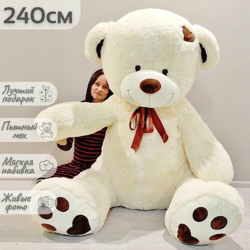 Купить Большой плюшевый медведь, мягкая игрушка мишка Тони 240 см, молочный с доставкой по всей России.