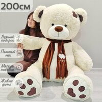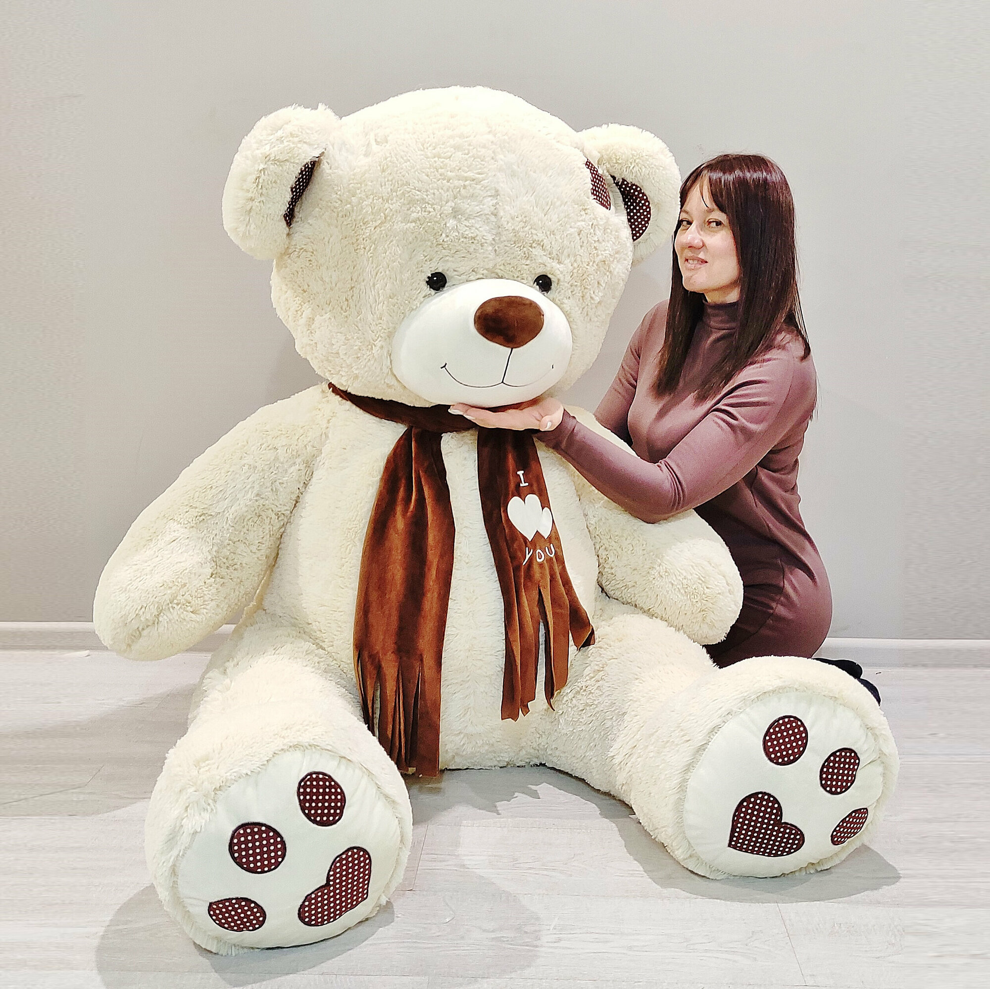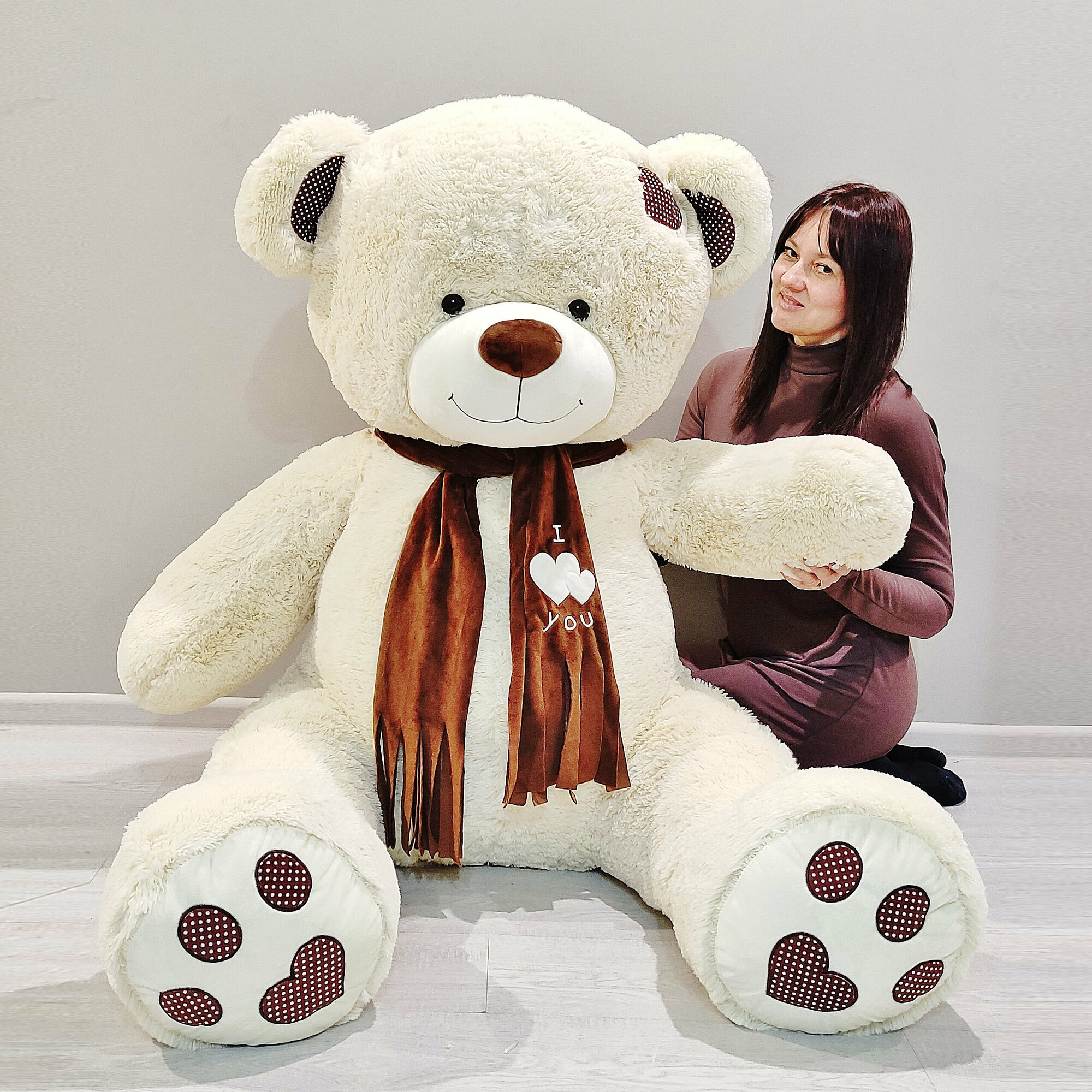 Купить Большой плюшевый медведь, мягкая игрушка мишка Тони Шарф 200 см, белый кремовый с доставкой по всей России.