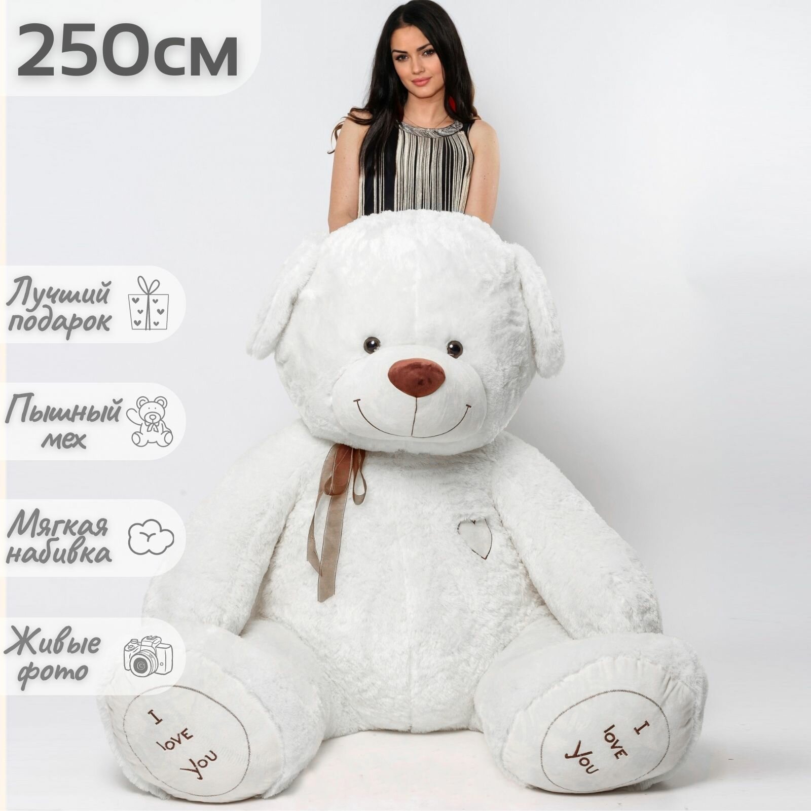 Большой плюшевый медведь, огромный мишка, мягкая игрушка Феликс 250 см, белый: сравнение цен, характеристики, фото, актуальное наличие и цены.