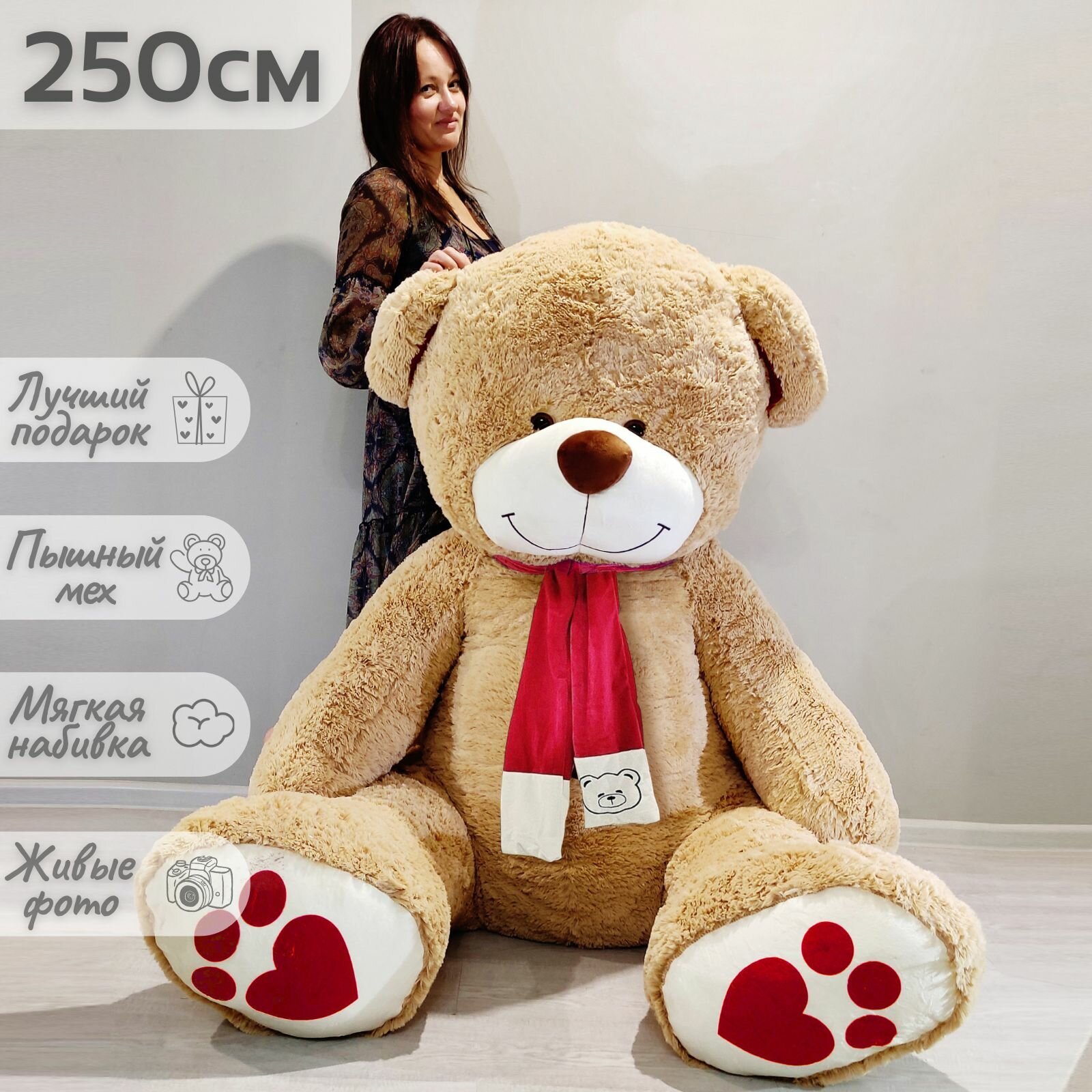 Большой плюшевый медведь, плюшевый мишка, мягкая игрушка Кельвин 250 см, бежевый: сравнение цен, характеристики, фото, актуальное наличие и цены.