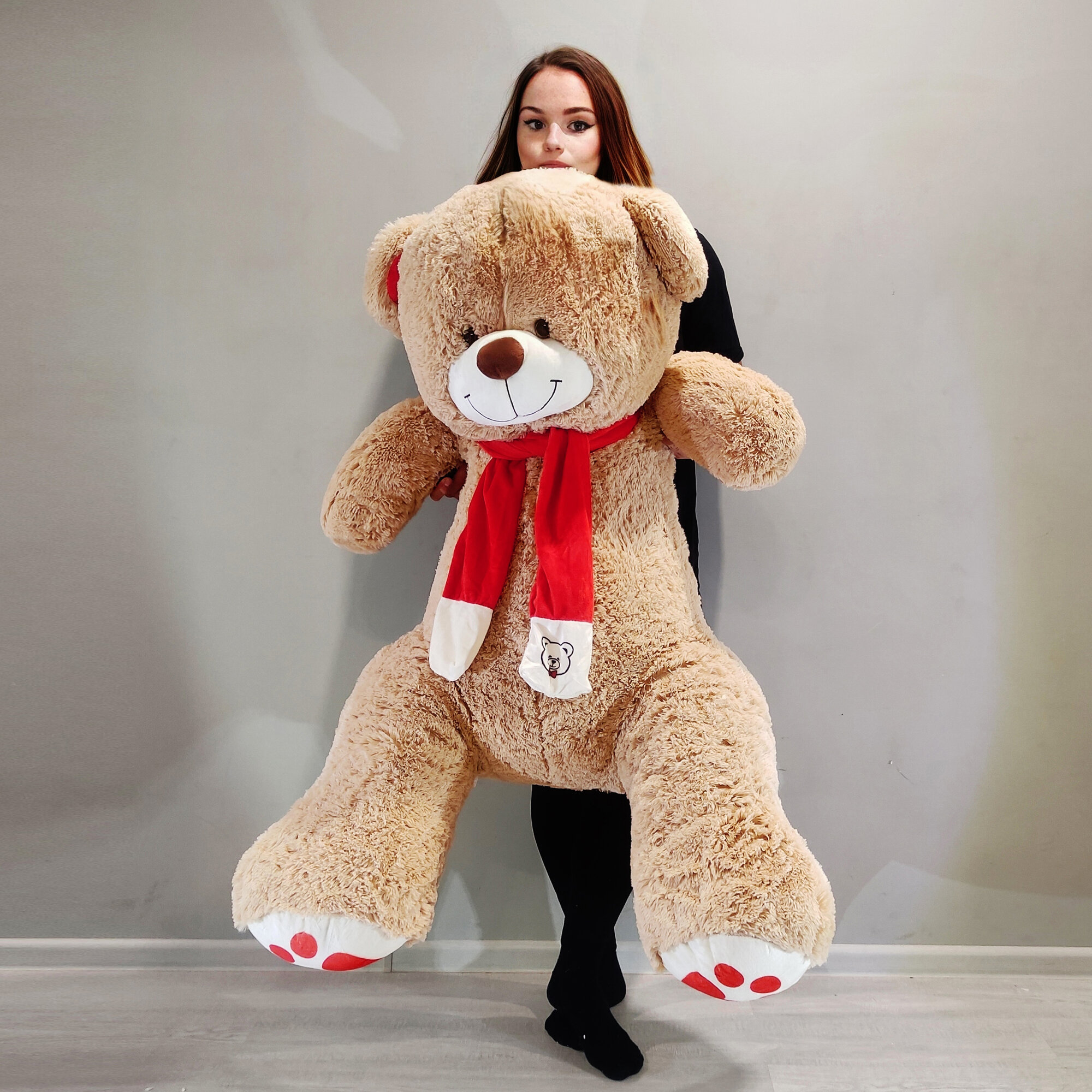 Купить Большой плюшевый мишка 145 см, медведь, мягкая игрушка медвежонок Кельвин, бежевый (140 см + 5 см в подарок) с доставкой по всей России.