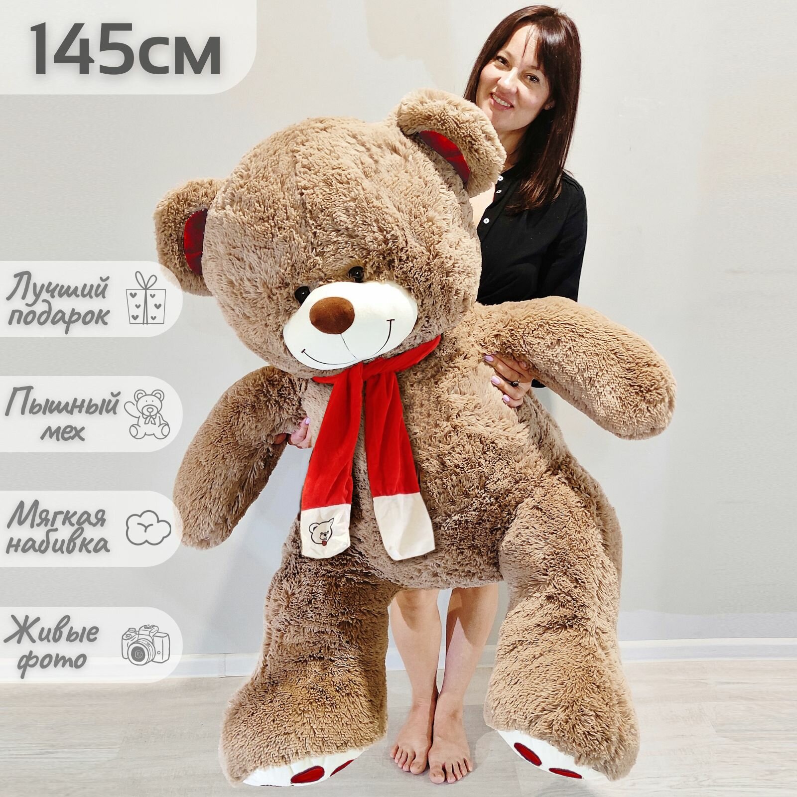 Купить Большой плюшевый мишка 145 см, медведь, мягкая игрушка медвежонок Кельвин, коричневый (140 см + 5 см в подарок) с доставкой по всей России.