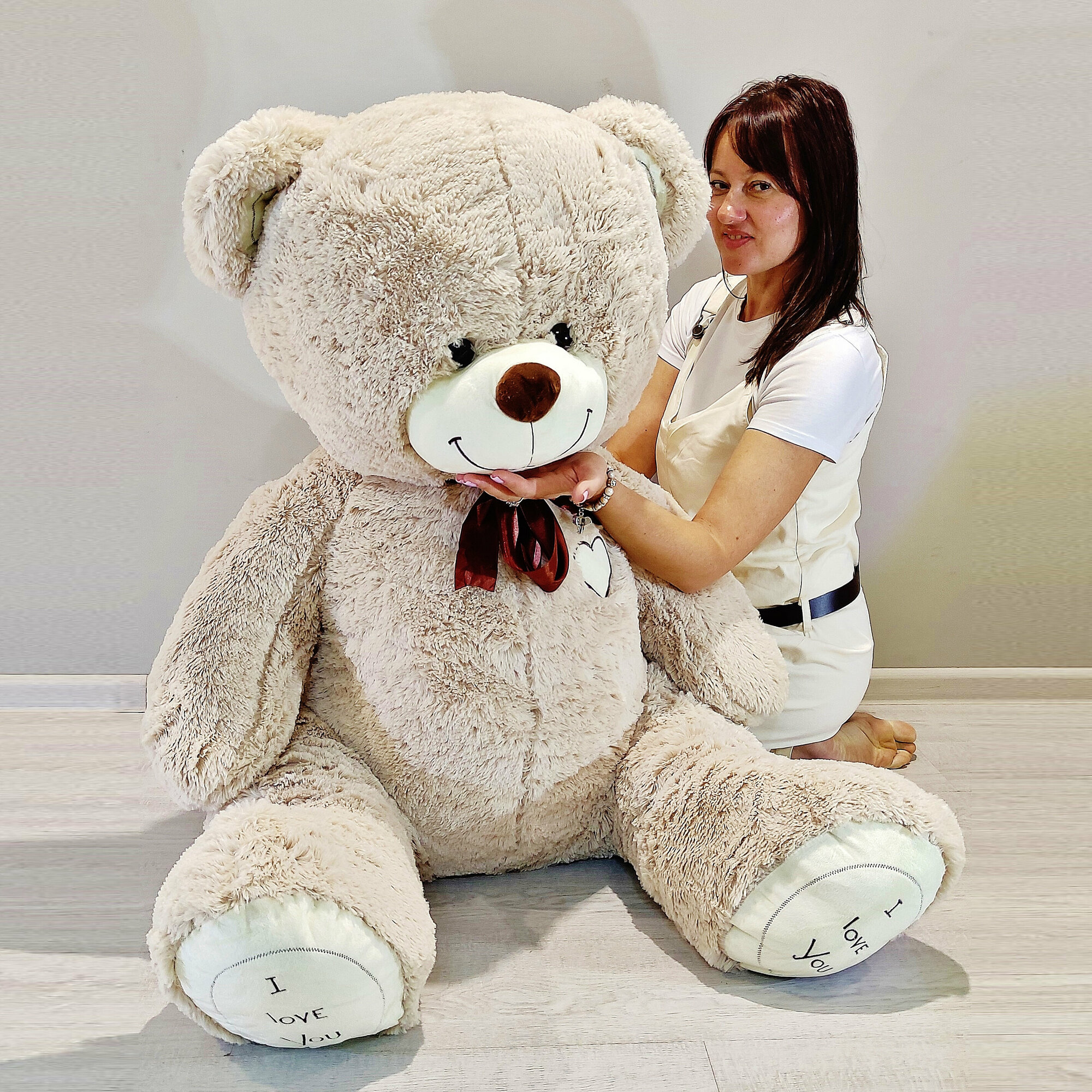 Купить Большой плюшевый мишка, мягкая игрушка медведь Феликс 160 см, светлый серый с доставкой по всей России.