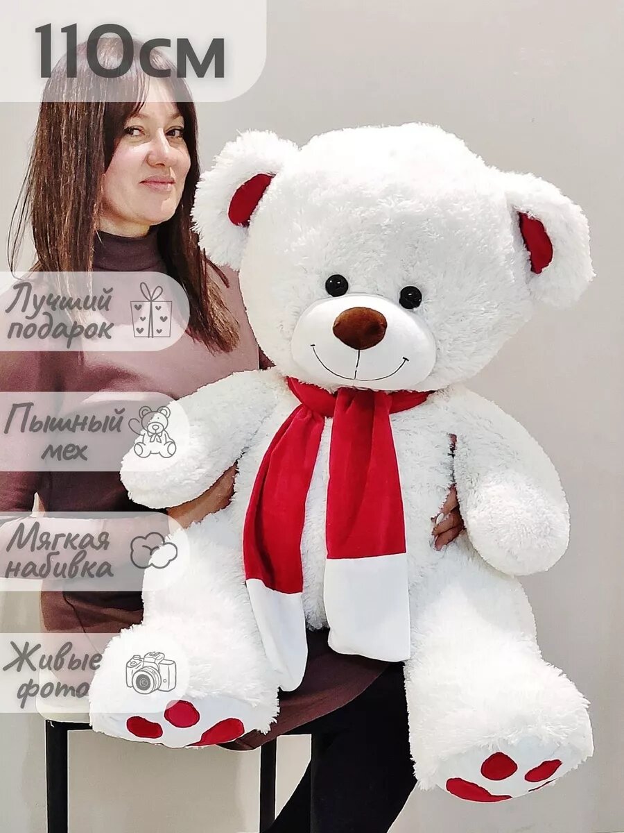 Купить Большой плюшевый мишка, мягкая игрушка медведь Кельвин 110 см, белый с доставкой по всей России.