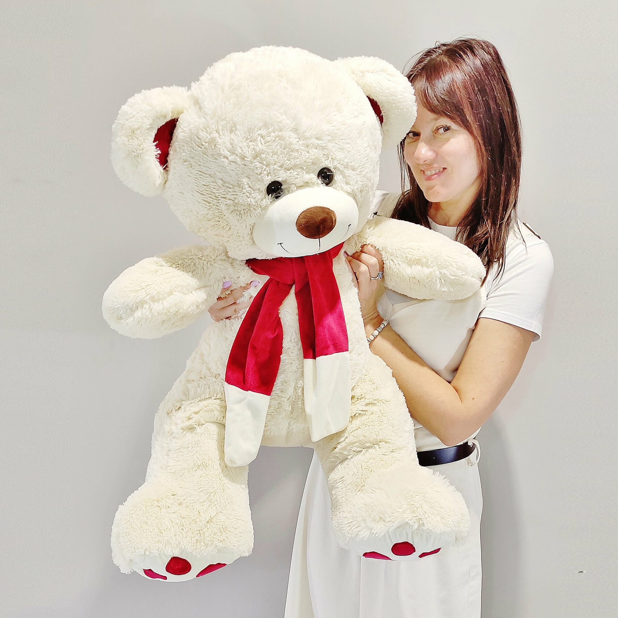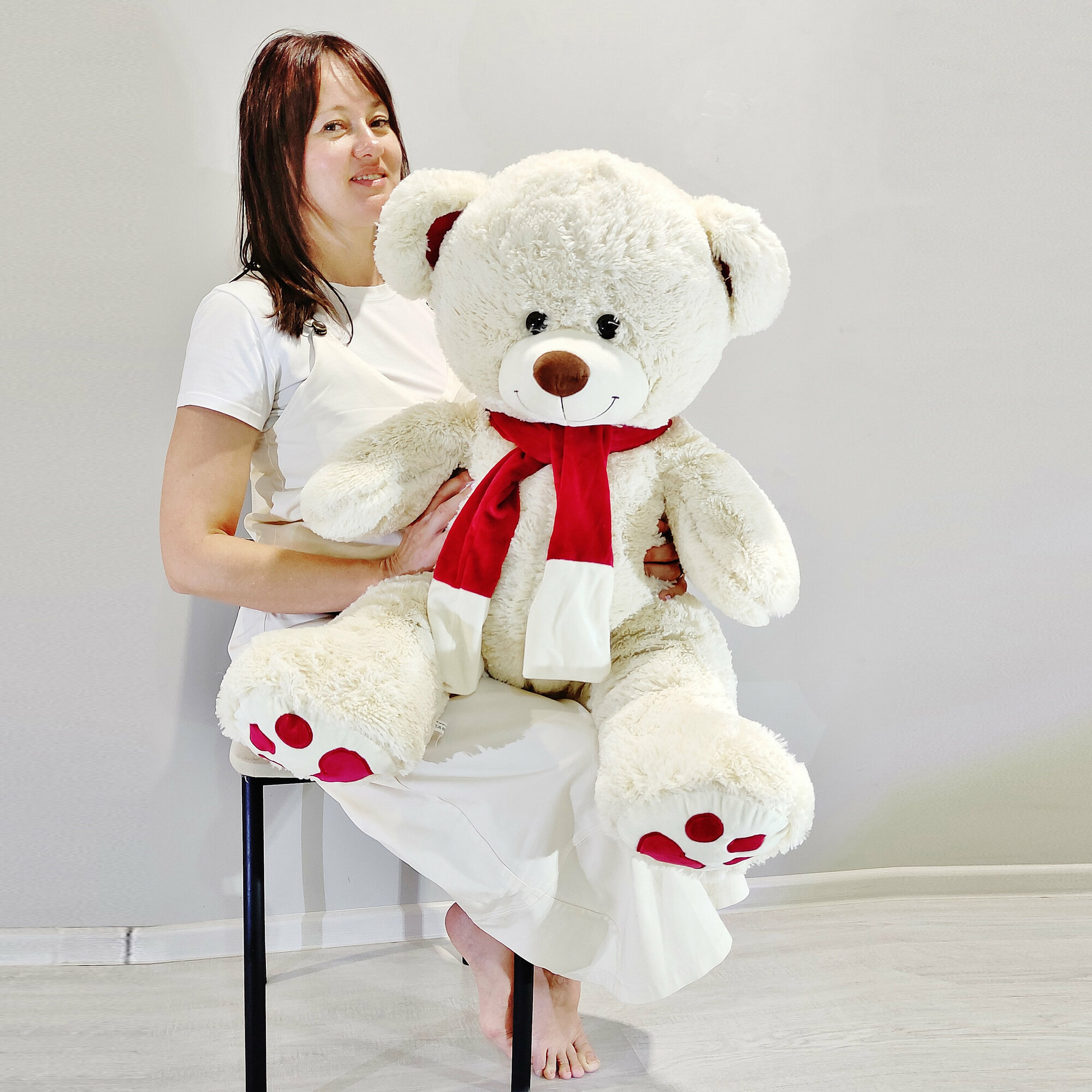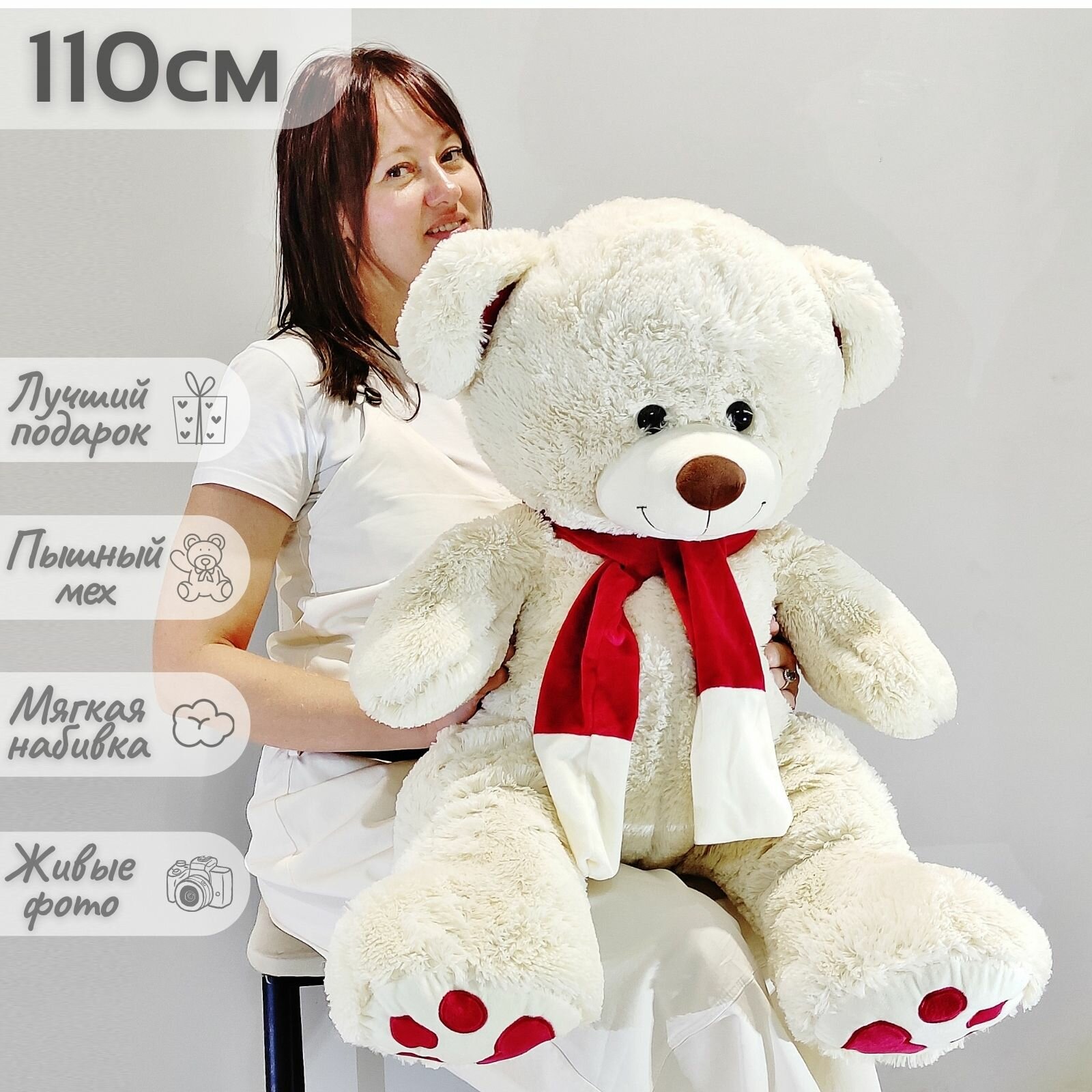 Купить Большой плюшевый мишка, мягкая игрушка медведь Кельвин 110 см, белый кремовый с доставкой по всей России.