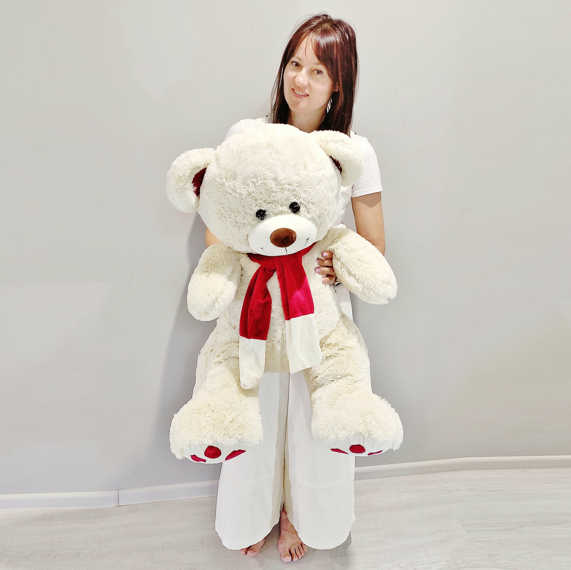 Купить Большой плюшевый мишка, мягкая игрушка медведь Кельвин 120 см, белый кремовый с доставкой по всей России.