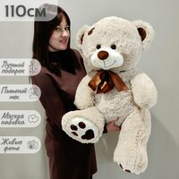 Купить Большой плюшевый мишка, мягкая игрушка медведь Тони 110 см, светлый кремовый с доставкой по всей России.