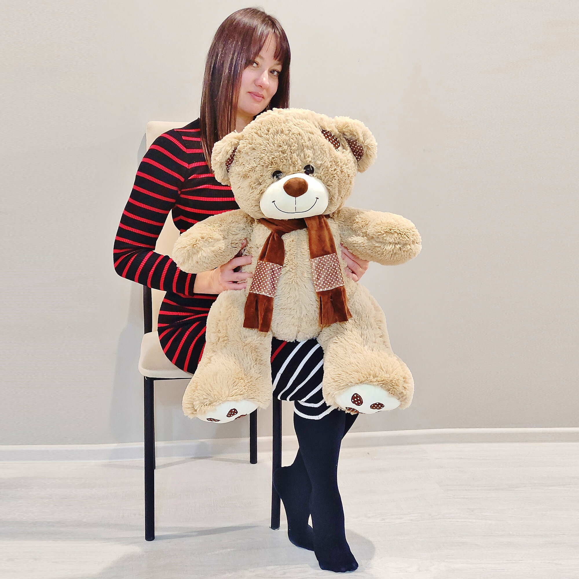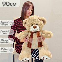 Купить Большой плюшевый мишка, мягкая игрушка медведь Тони 90 см, светлый коричневый с доставкой по всей России.