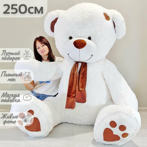 Купить Большой плюшевый мишка, мягкая игрушка мишка Тони Шарф 250 см, белый с доставкой по всей России.