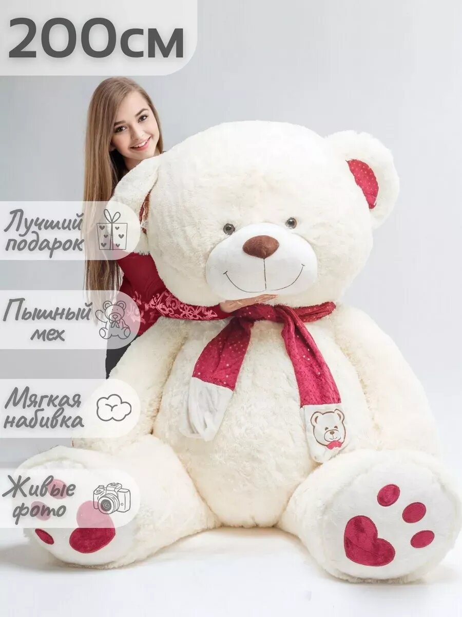 Большой плюшевый мишка, плюшевый медведь, мягкая игрушка Кельвин 200 см, молочный: сравнение цен, характеристики, фото, актуальное наличие и цены.