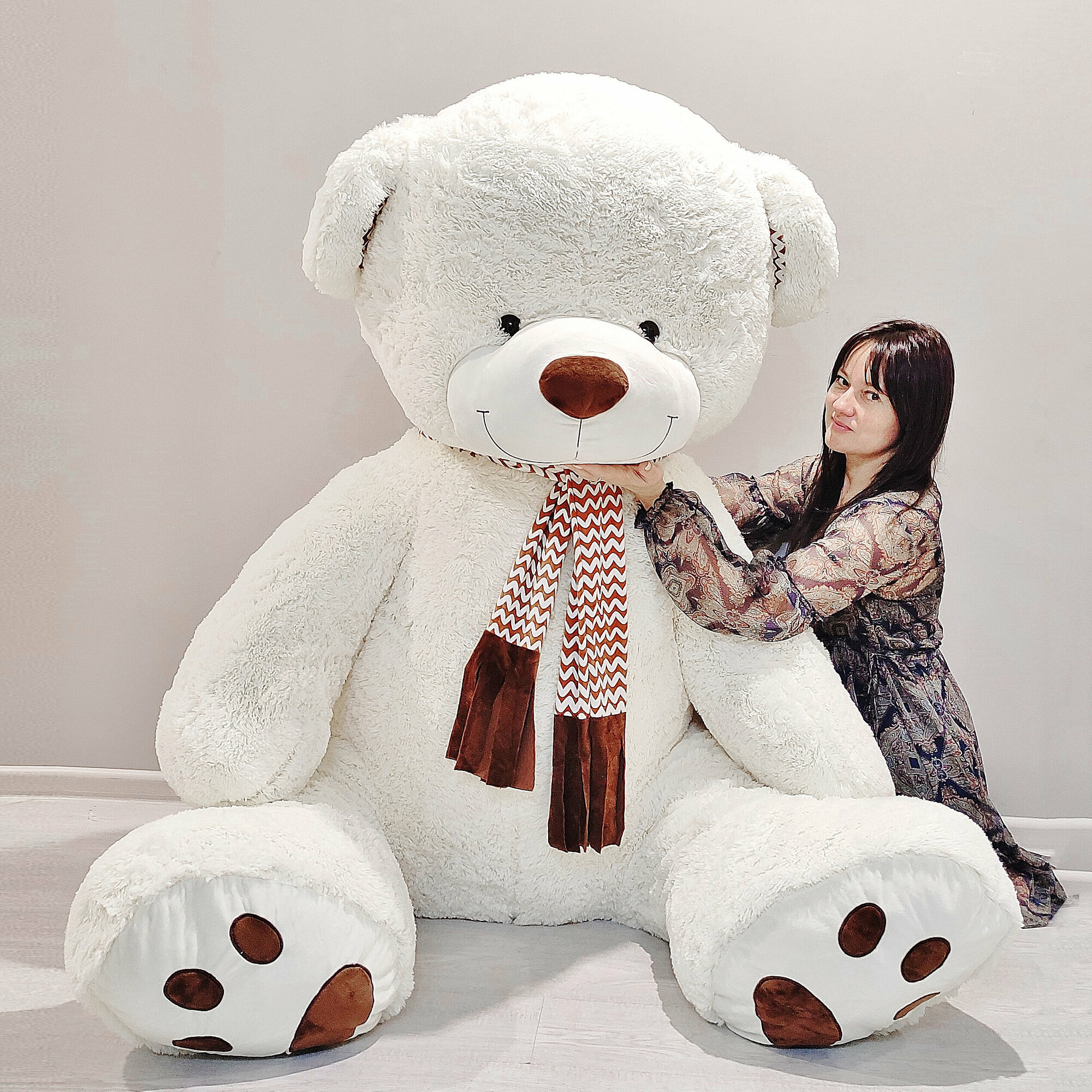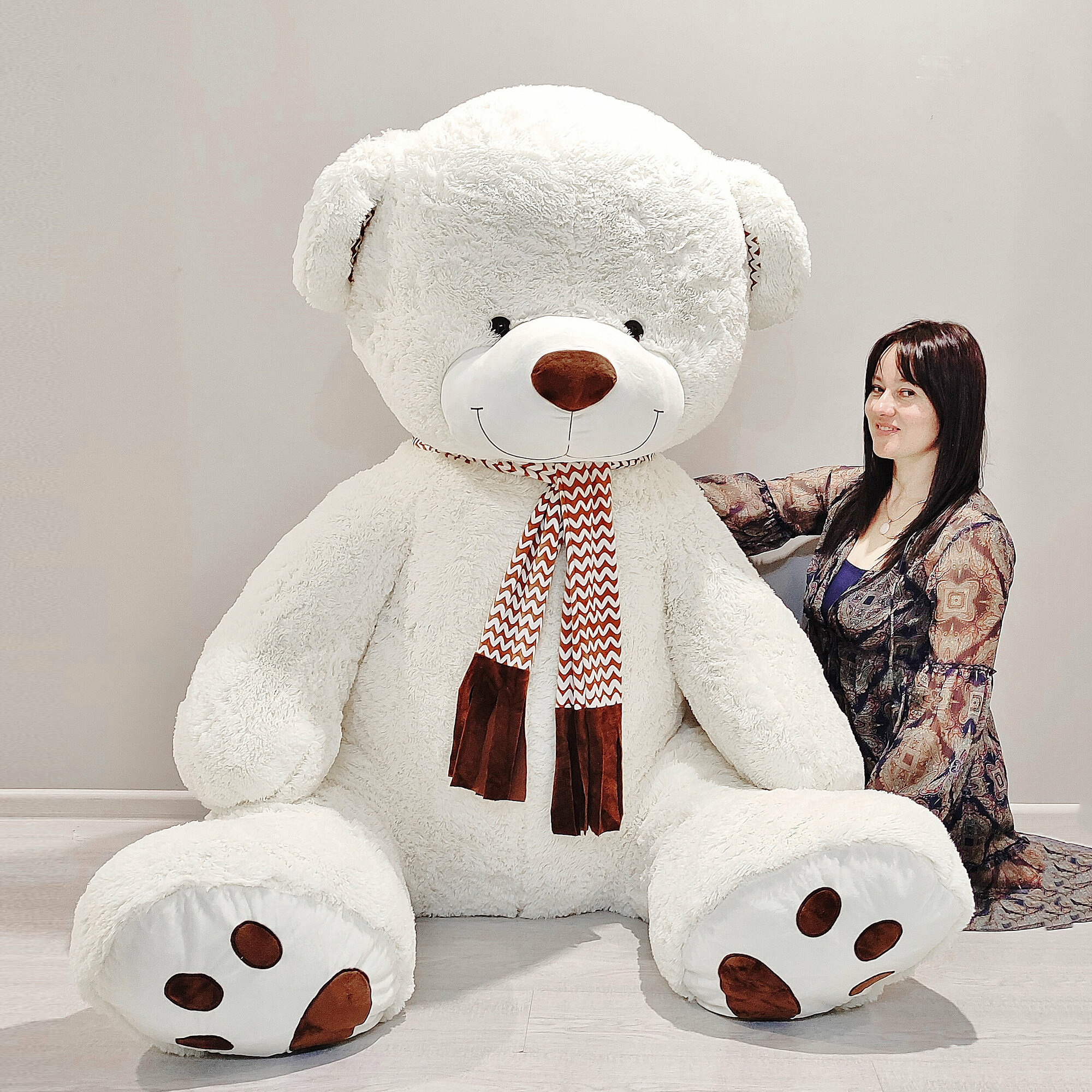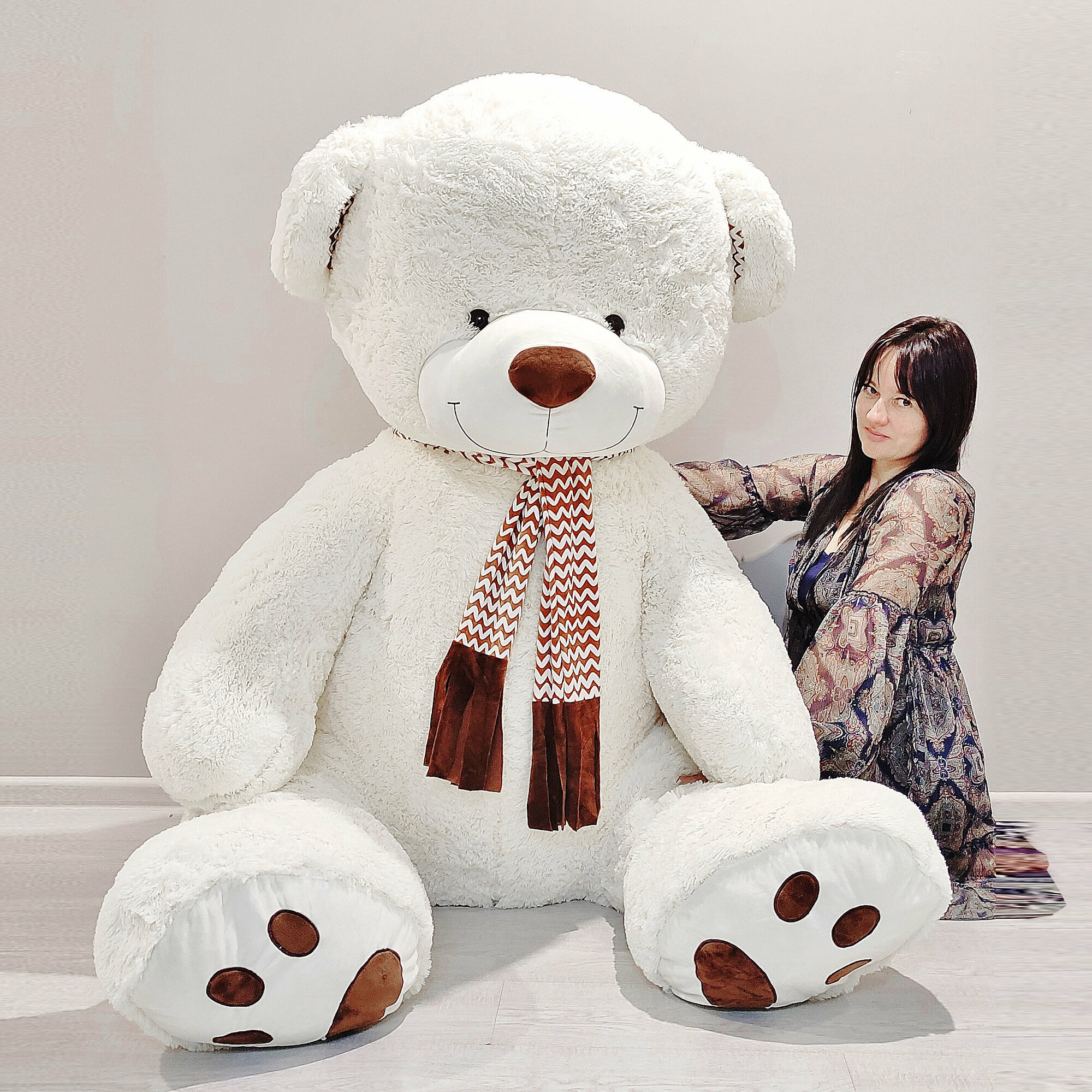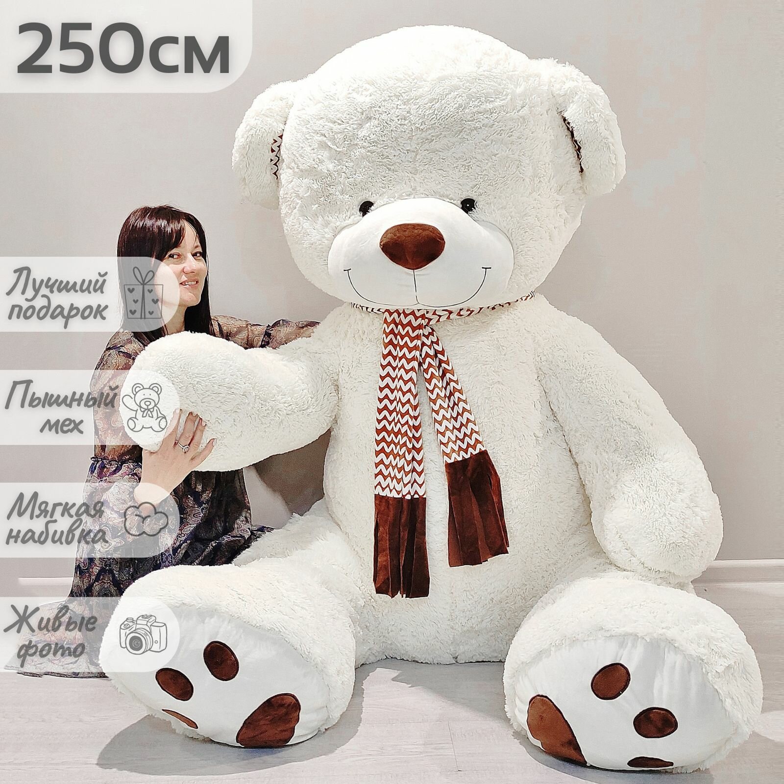 Купить Большой плюшевый мишка, плюшевый медведь с шарфом, мягкая игрушка Барни 250 см, белый с доставкой по всей России.