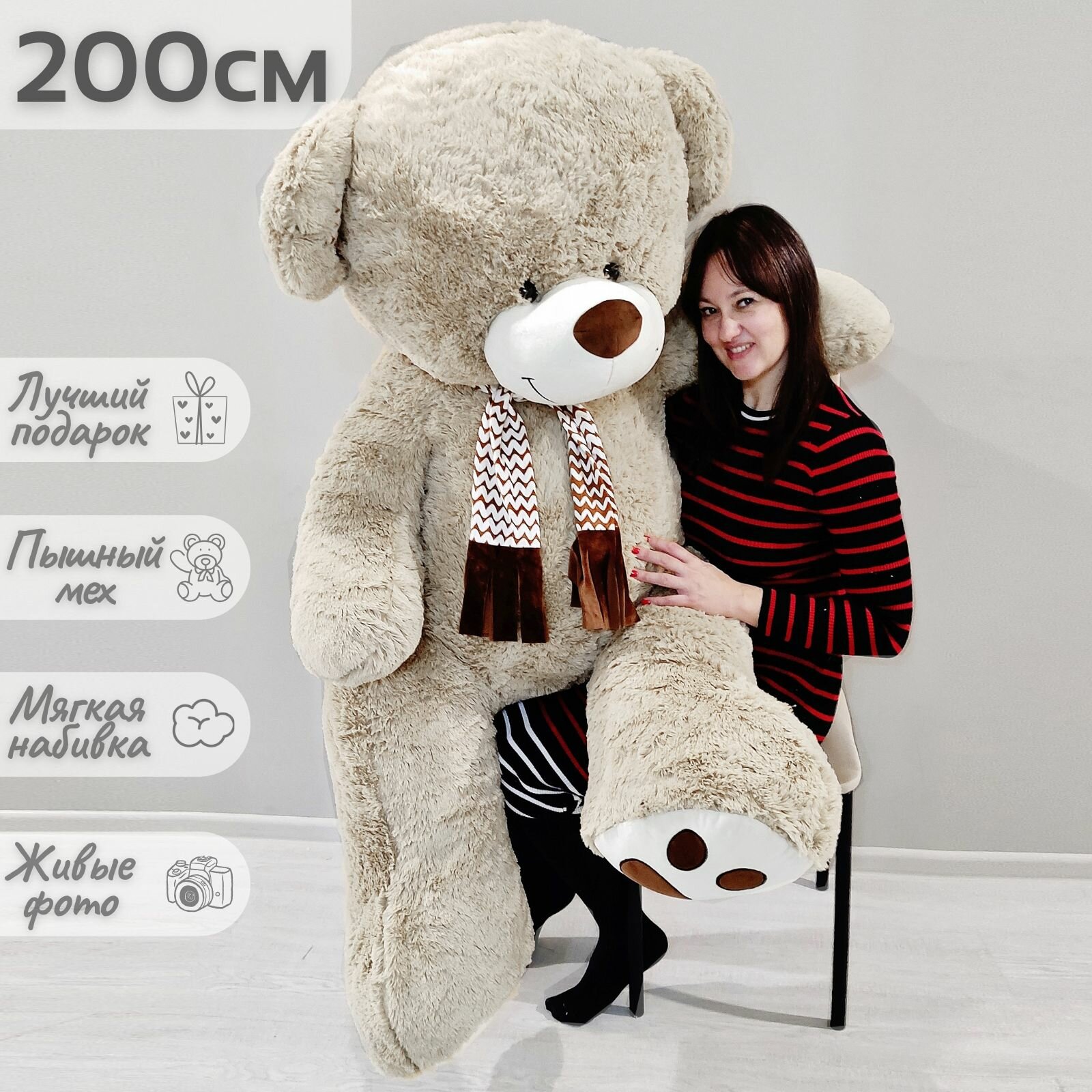 Купить Большой плюшевый мишка, серая мягкая игрушка мишка Барни 200 см с доставкой по всей России.