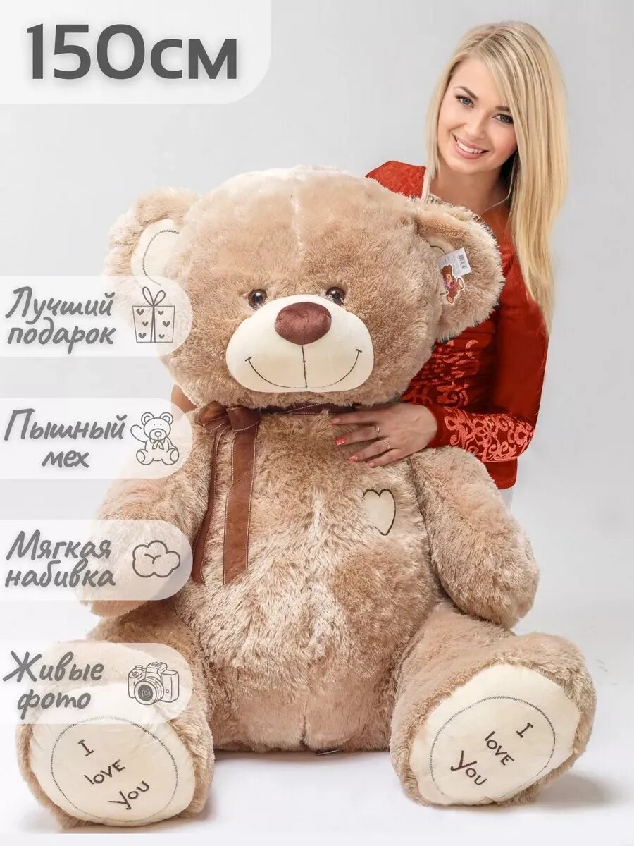 Большой плюшевый мягкий мишка, игрушка медведь Феликс 150 см, бежевый: сравнение цен, характеристики, фото, актуальное наличие и цены.