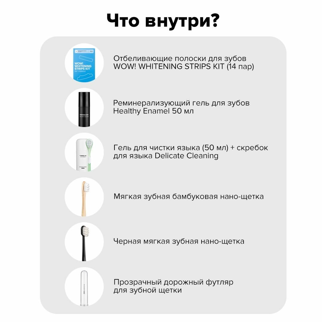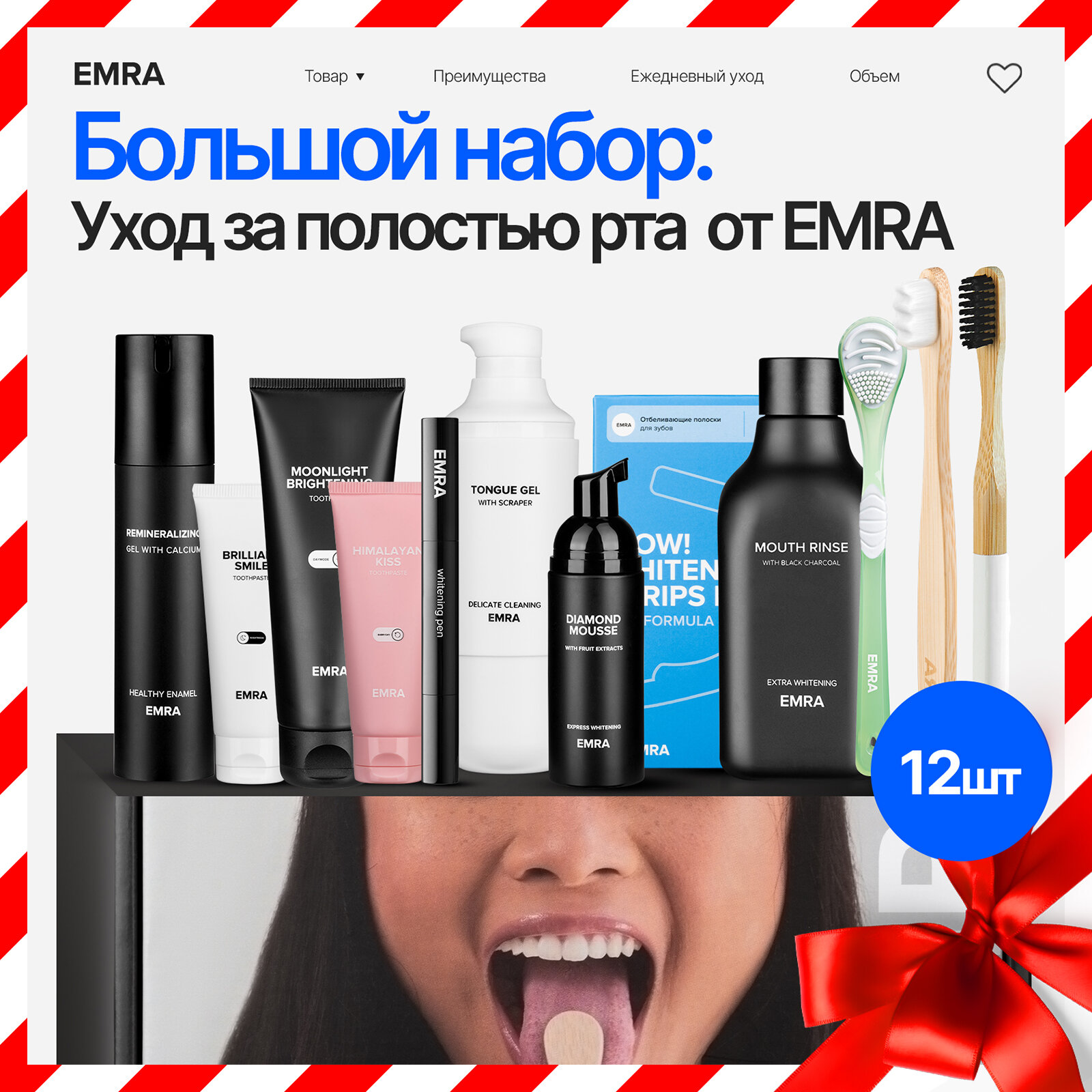 Встречайте, большой подарочный набор для ухода за полостью рта от EMRA из 12 предметов в стильной фирменной коробке с открыткой. Набор дополнительно упакован в крафт для надежности. Что в наборе?