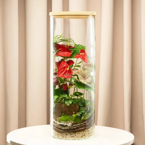 Антарес - самый большой флорариум из линейки. Цветущий антуриум делает его очень ярким.