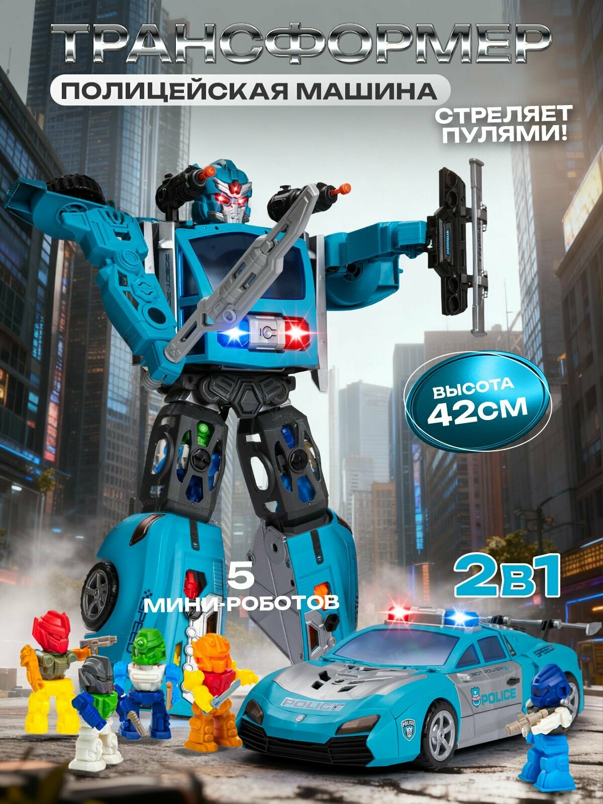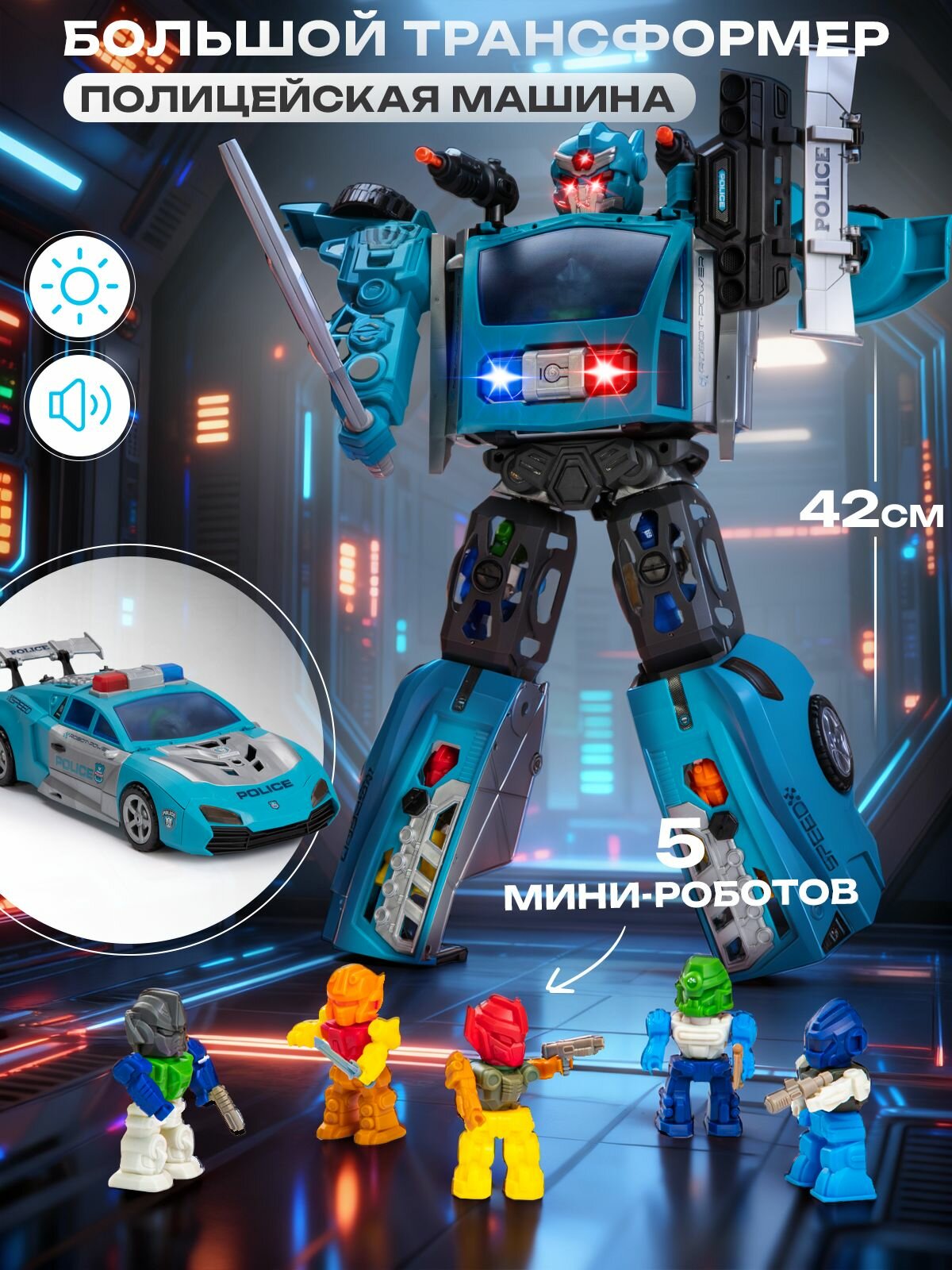 Купить Большой робот трансформер — полицейская машина 42 см, стреляет пулями, со светом и звуком с доставкой по всей России. Большой робот трансформер — полицейская машина 42 см, стреляет пулями, со светом и звуком: сравнение цен, характеристики, фото, актуальное наличие и цены.