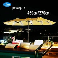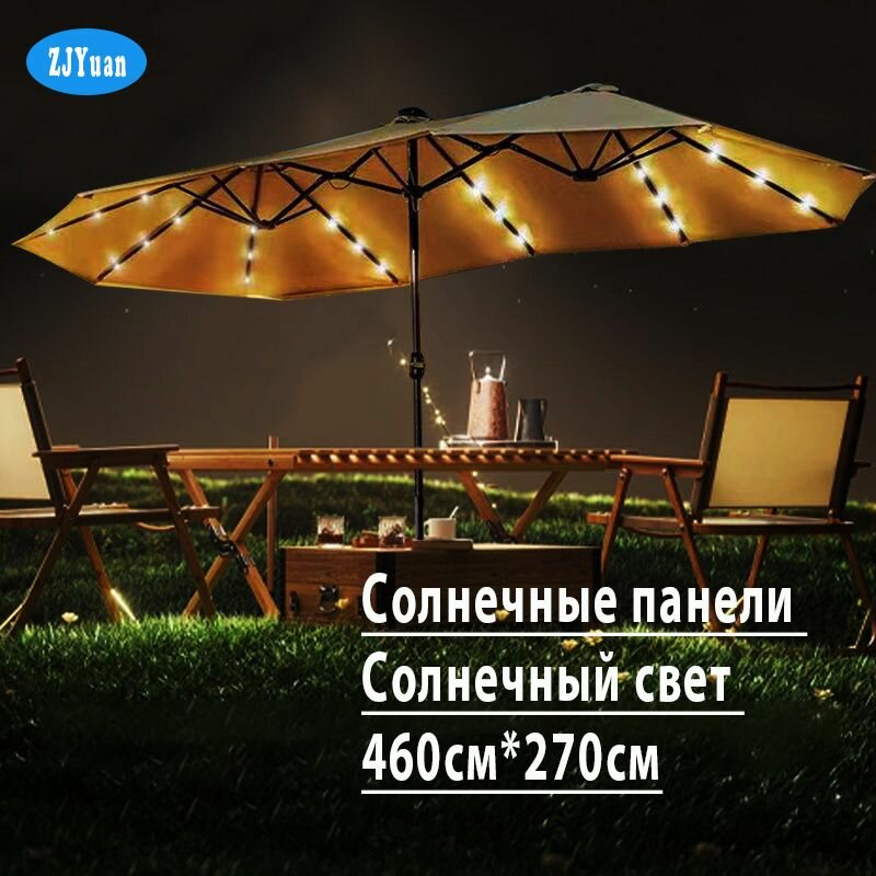 Большой садовый солнечный складной зонт с основанием для впрыскивания воды, прямоугольный зонт размером 455х270 см. Включая солнечные панели + солнечное освещение.