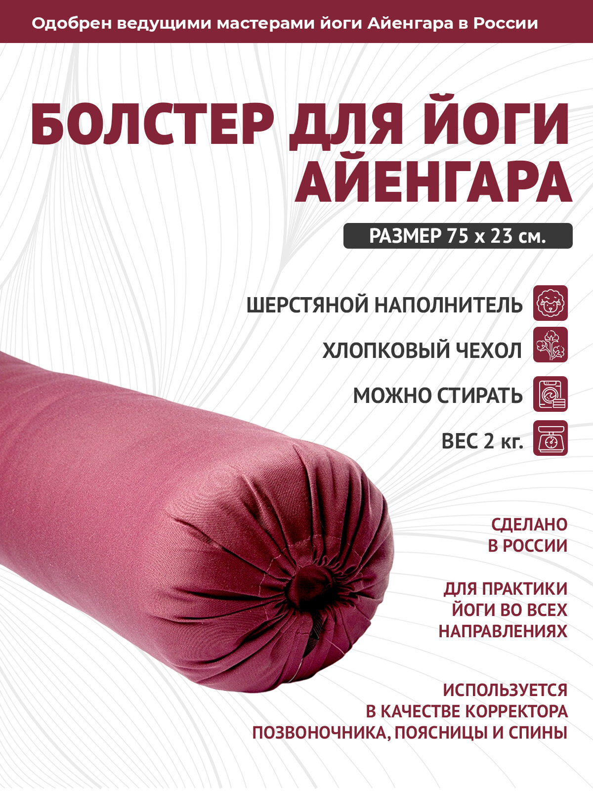 Болстер для йоги Айенгара бордовый шерстяной с хлопковым чехлом 75см Рамайога: сравнение цен, характеристики, фото, актуальное наличие и цены.