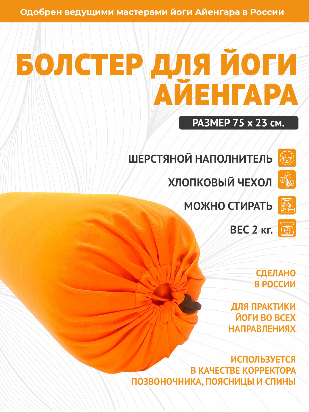 Болстер для йоги Айенгара оранжевый шерстяной с хлопковым чехлом 75см Рамайога: сравнение цен, характеристики, фото, актуальное наличие и цены.