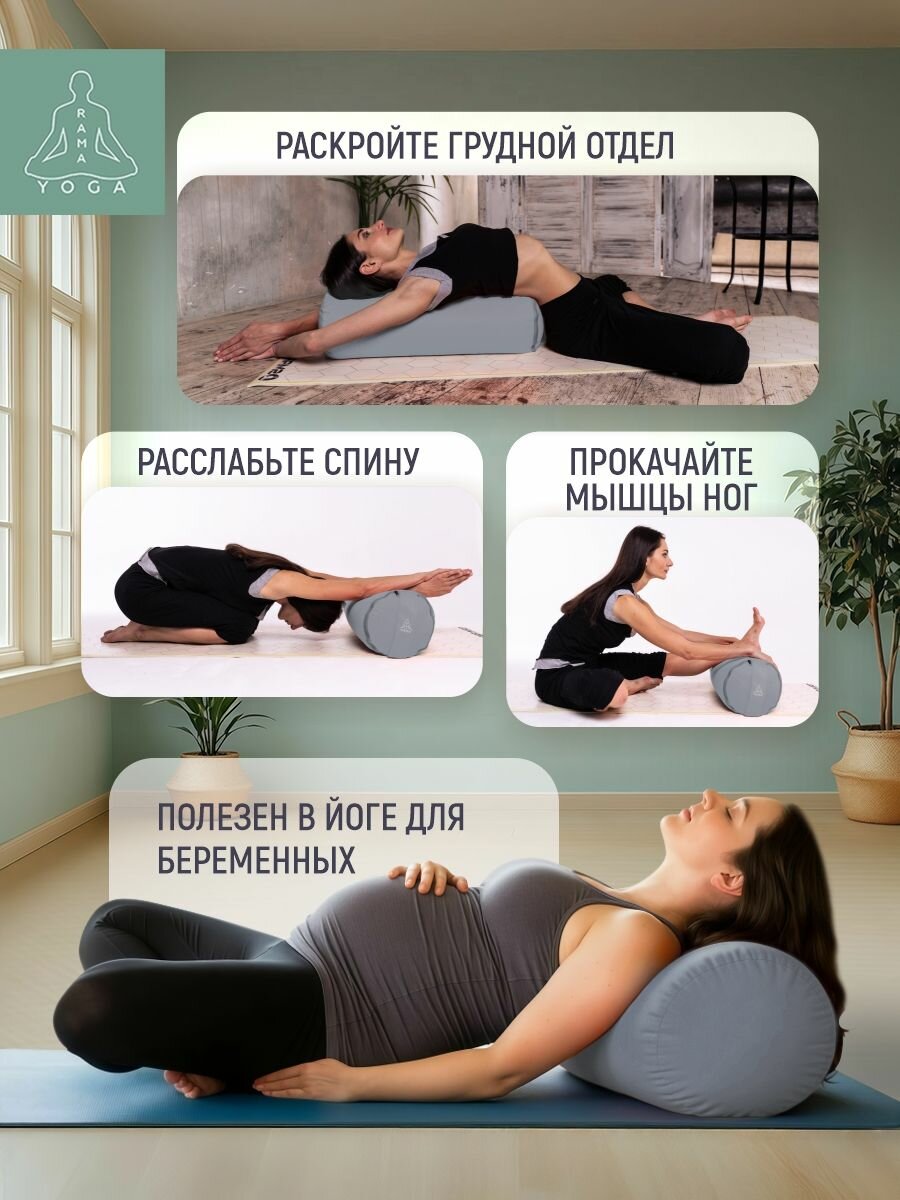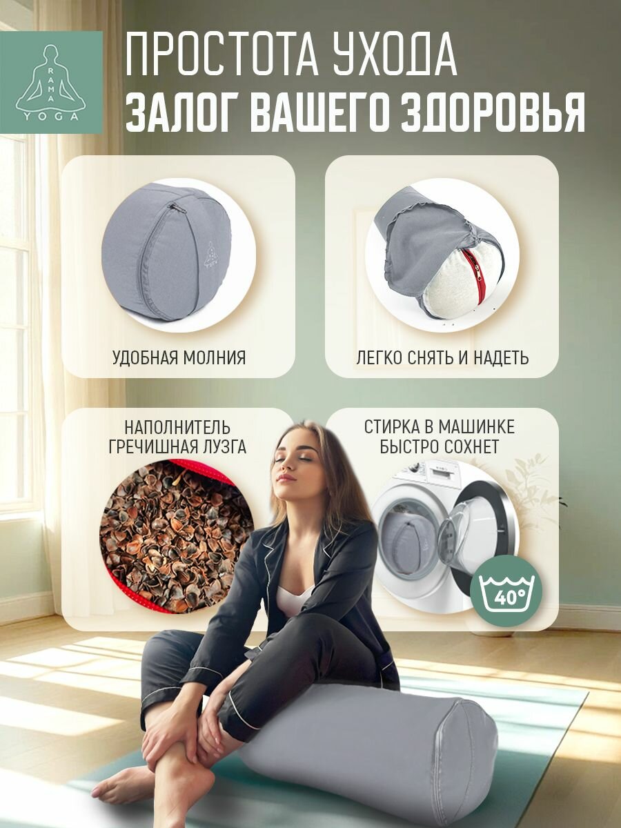 Купить Болстер с лузгой для йоги, валик для спины, с регулированием плотности, два чехла, SIMPLE RAMAYOGA 50 серый с доставкой по всей России.