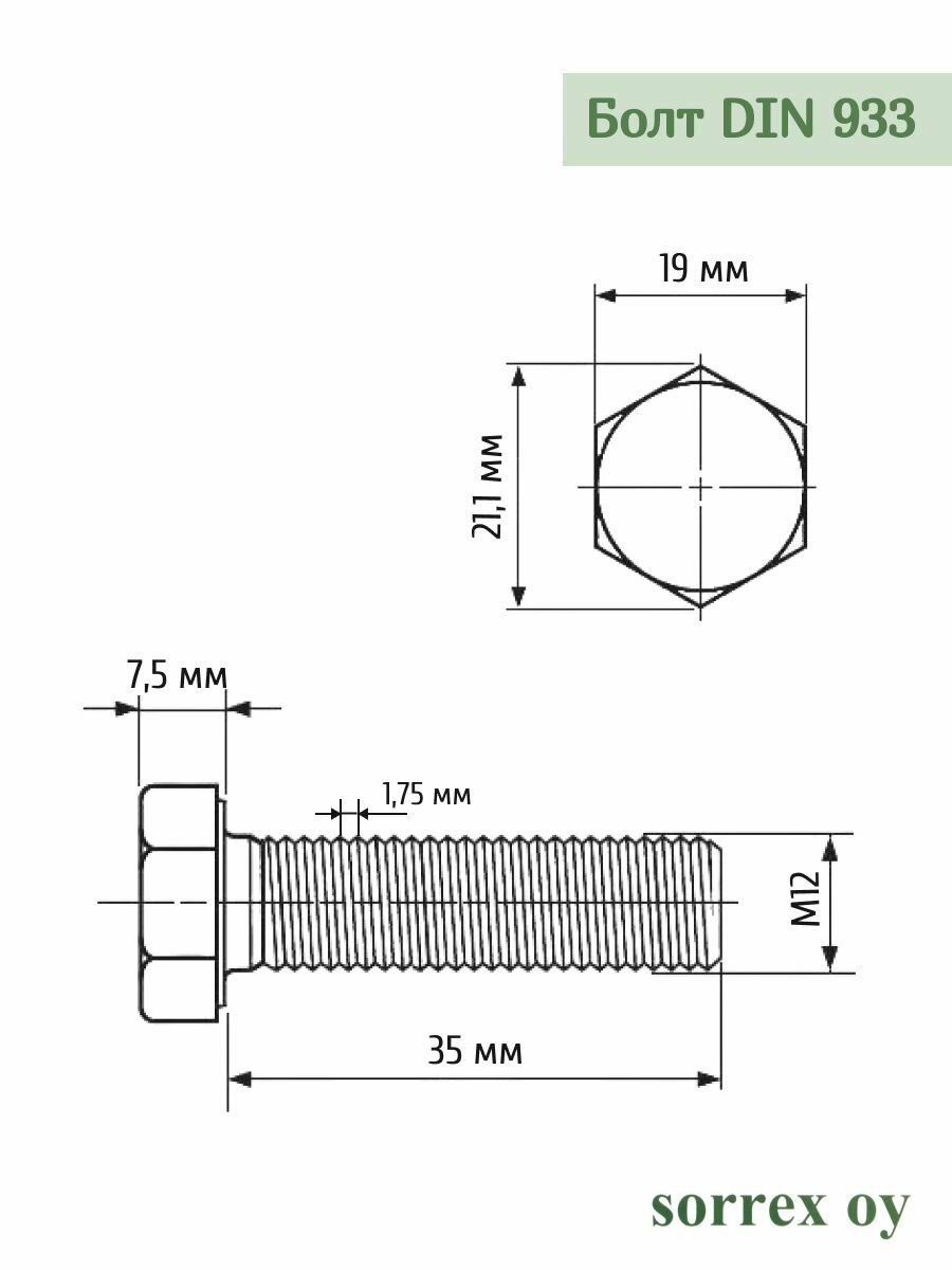 Купить Болт М12х35 мм с шестигранной головкой по DIN 933 с полной резьбой оцинкованный, класс прочности 8.8 (100 штук) Sorrex OY с доставкой по всей России. Болт М12х35 мм с шестигранной головкой по DIN 933 с полной резьбой оцинкованный, класс прочности 8.8 (100 штук) Sorrex OY: сравнение цен, характеристики, фото, актуальное наличие и цены.