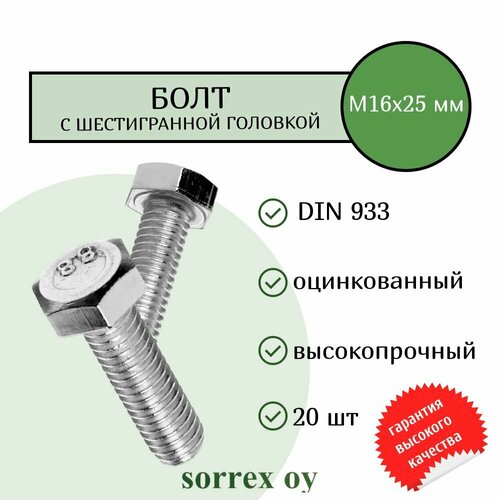 Купить Болт DIN 933 М16х25мм оцинкованный класс прочности 8.8 Sorrex OY (20 штук) с доставкой по всей России. Болт DIN 933 М16х25мм оцинкованный класс прочности 8.8 Sorrex OY (20 штук): сравнение цен, характеристики, фото, актуальное наличие и цены.