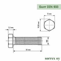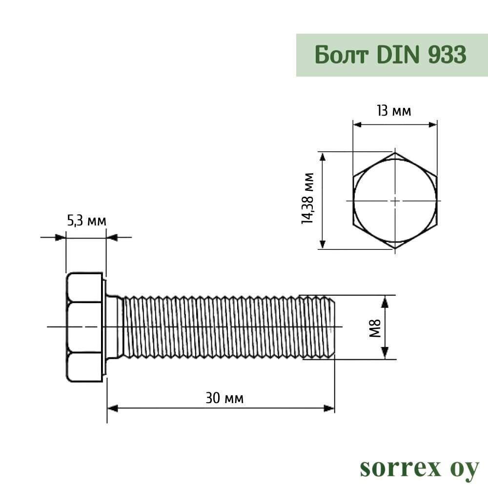 Болт М8х30 мм с шестигранной головкой по DIN 933 с полной резьбой оцинкованный, класс прочности 8.8 (500 штук) Sorrex OY: сравнение цен, характеристики, фото, актуальное наличие и цены.