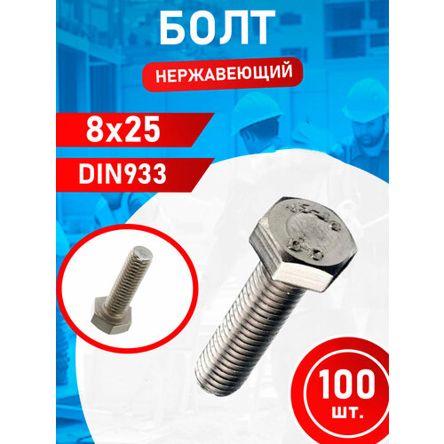 Болт нержавеющий 8х25 мм DIN933 нержавейка 50 шт, DIN933 А2, резьба полная М8, шестигранная головка, нержавеющая сталь, имеет сплав характеристики А2, который содержит 10% никеля и 18% хрома, также в составе присутствует углерод, марганец и кремний.