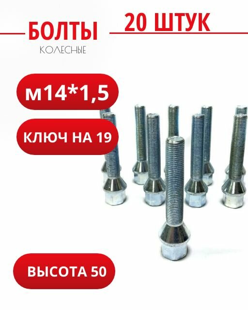 Купить Болт колесный М14*1,5 высота 50 конус, ключ 19, цинк,20 штук с доставкой по всей России. Болт колесный М14*1,5 высота 50 конус, ключ 19, цинк,20 штук: сравнение цен, характеристики, фото, актуальное наличие и цены.