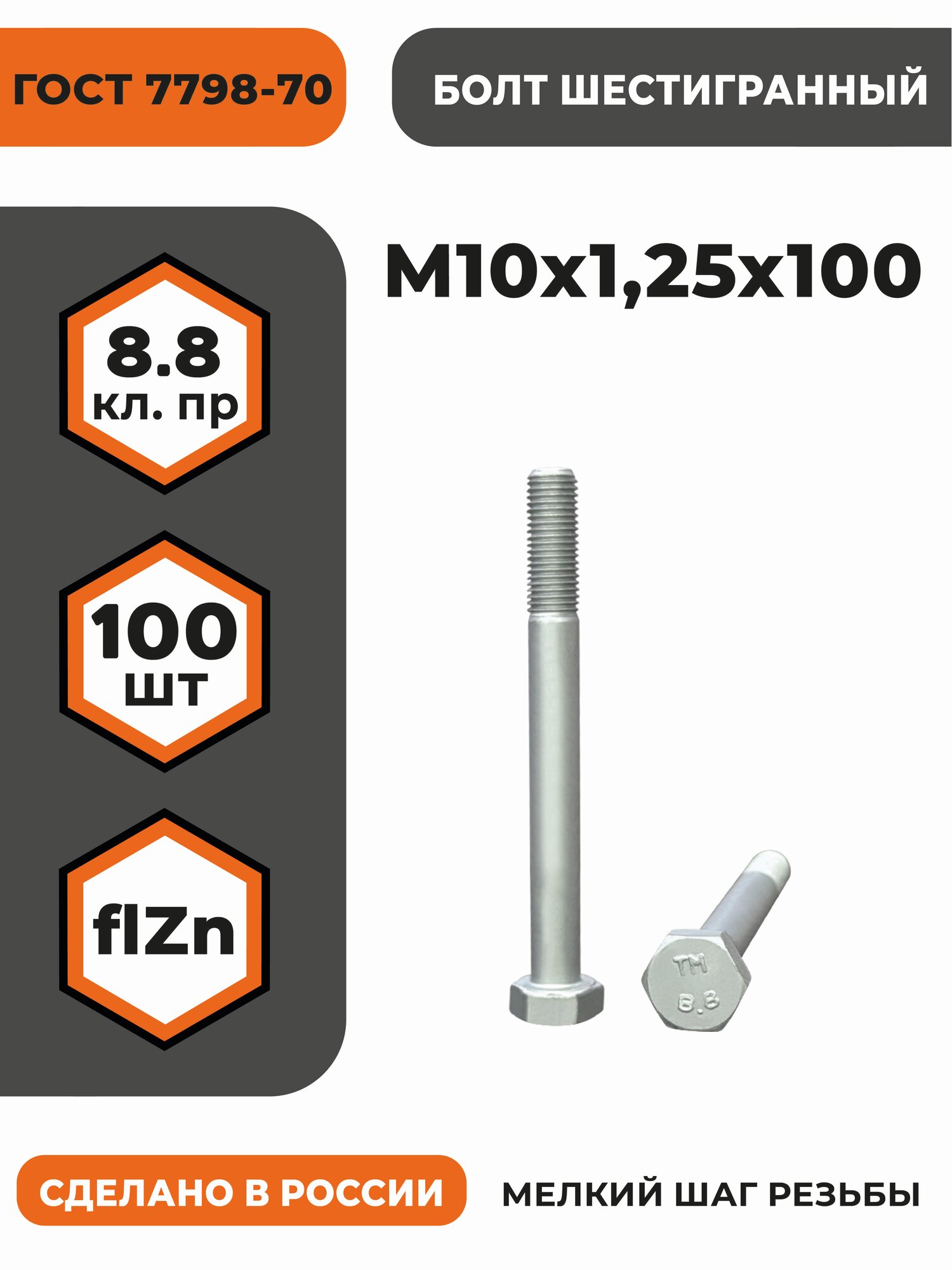 Купить Болт М10х1,25х100 ГОСТ 7798-70 (DIN 960) кл. пр. 8.8 в цинке, высокопрочный, мелкая резьба, уп. — 100 шт. с доставкой по всей России. Болт М10х1,25х100 ГОСТ 7798-70 (DIN 960) кл. пр. 8.8 в цинке, высокопрочный, мелкая резьба, уп. — 100 шт.: сравнение цен, характеристики, фото, актуальное наличие и цены.