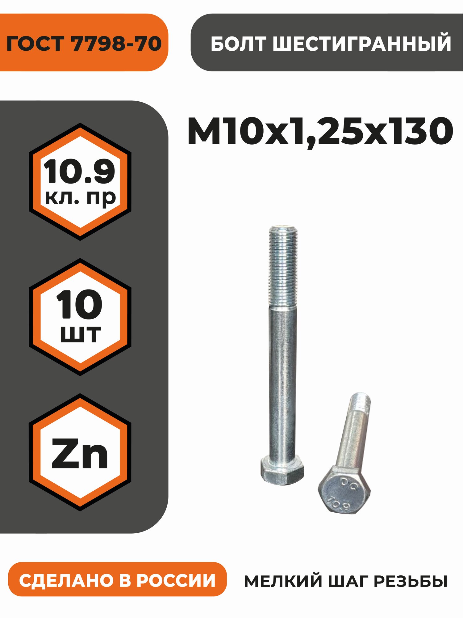 Купить Болт М10х1,25х130 ГОСТ 7798-70 (DIN 960) кл. пр. 10.9 в цинке, высокопрочный, мелкая резьба, уп. — 10 шт. с доставкой по всей России. Болт М10х1,25х130 ГОСТ 7798-70 (DIN 960) кл. пр. 10.9 в цинке, высокопрочный, мелкая резьба, уп. — 10 шт.: сравнение цен, характеристики, фото, актуальное наличие и цены.