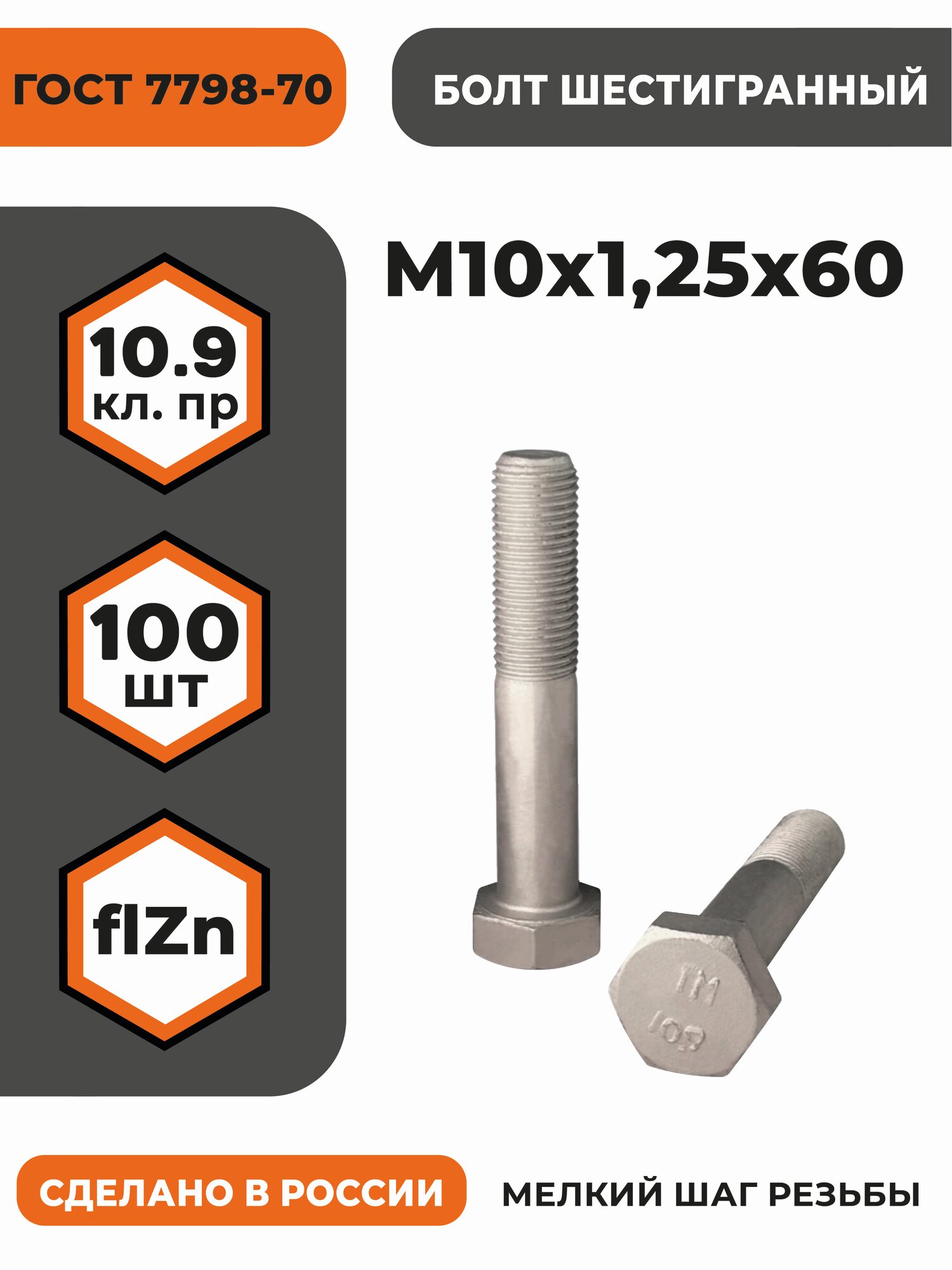 Купить Болт М10х1,25х60 ГОСТ 7798-70 (DIN 960) кл. пр. 10.9 в цинке, высокопрочный, мелкая резьба, уп. — 100 шт. с доставкой по всей России. Болт М10х1,25х60 ГОСТ 7798-70 (DIN 960) кл. пр. 10.9 в цинке, высокопрочный, мелкая резьба, уп. — 100 шт.: сравнение цен, характеристики, фото, актуальное наличие и цены.