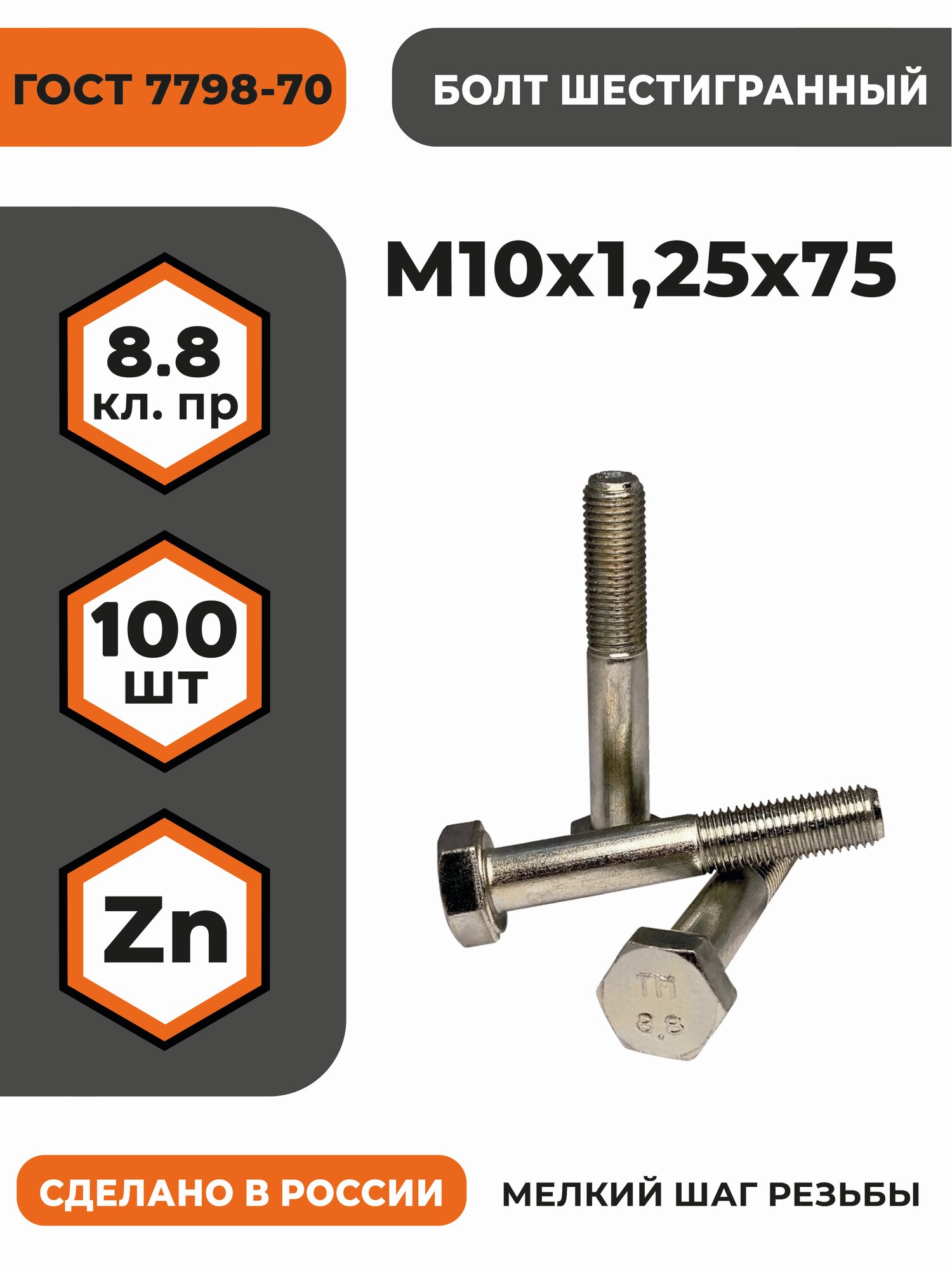 Купить Болт М10х1,25х75 ГОСТ 7798-70 (DIN 960) кл. пр. 8.8 в цинке, высокопрочный, мелкая резьба, уп. — 100 шт. с доставкой по всей России. Болт М10х1,25х75 ГОСТ 7798-70 (DIN 960) кл. пр. 8.8 в цинке, высокопрочный, мелкая резьба, уп. — 100 шт.: сравнение цен, характеристики, фото, актуальное наличие и цены.