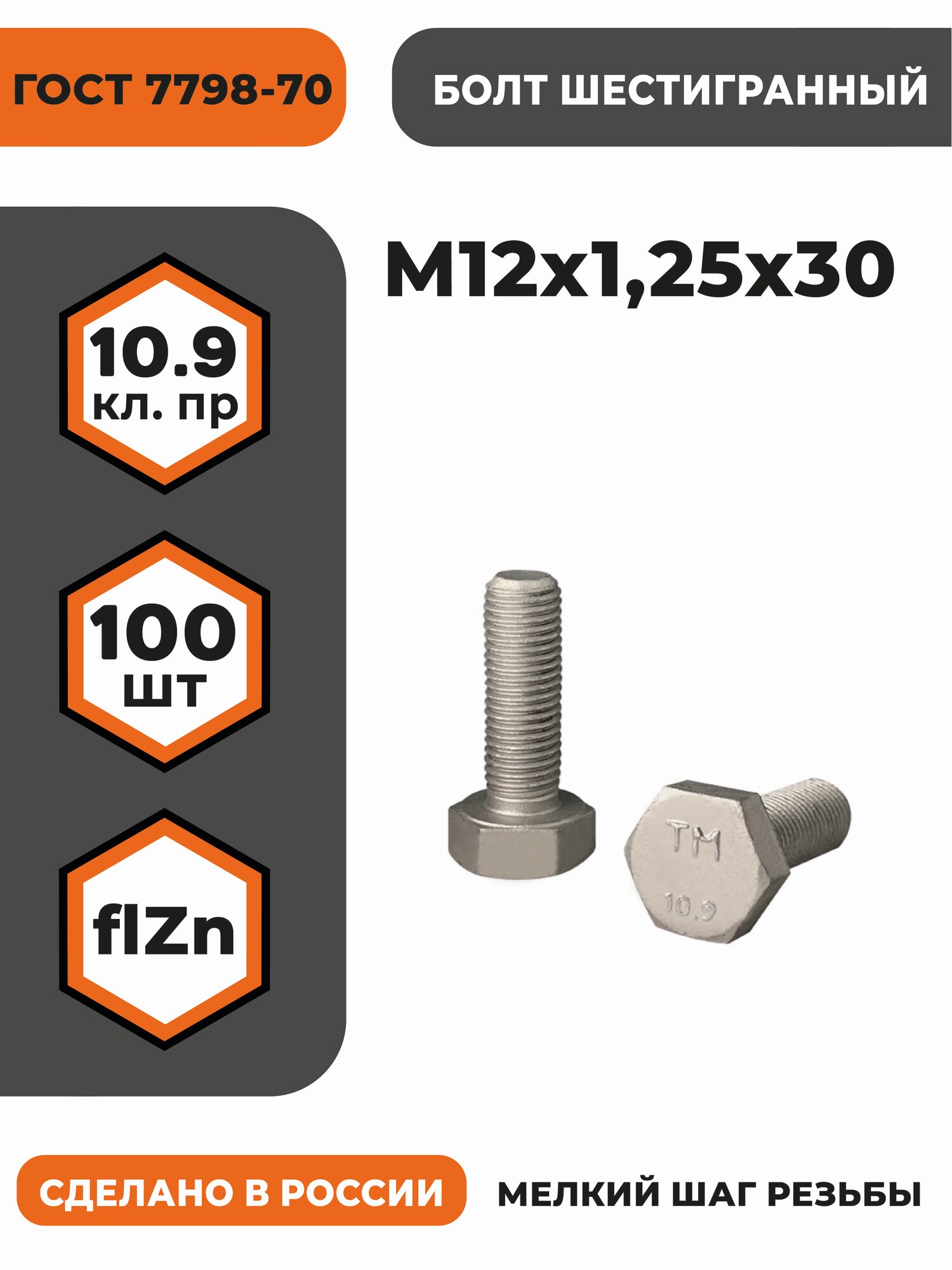Болт М12х1,25х30 ГОСТ 7798-70 (DIN 960) кл. пр. 10.9 в цинке, высокопрочный, мелкая резьба, уп. — 100 шт.: сравнение цен, характеристики, фото, актуальное наличие и цены.
