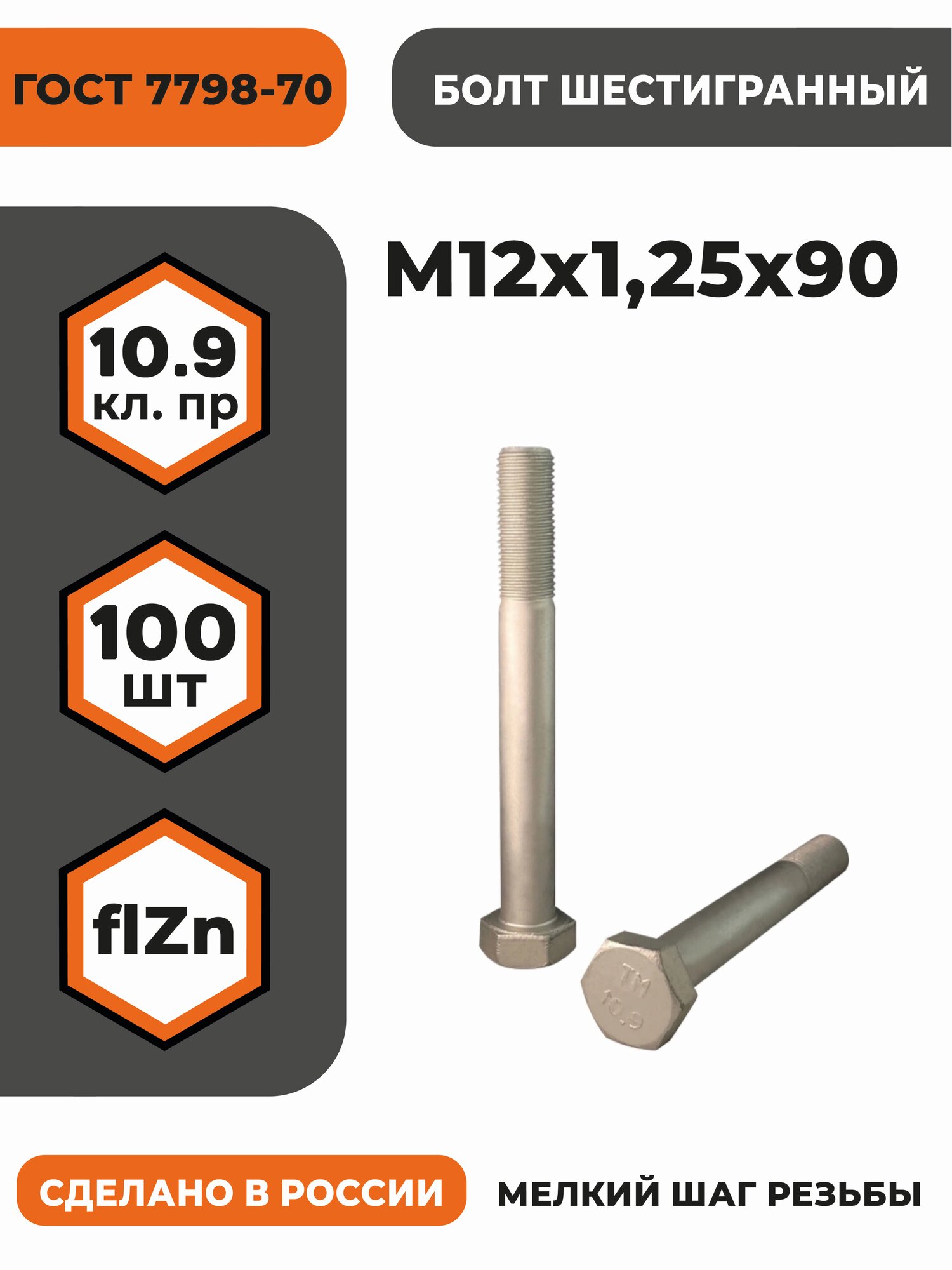 Болт М12х1,25х90 ГОСТ 7798-70 (DIN 960) кл. пр. 10.9 в цинке, высокопрочный, мелкая резьба, уп. — 100 шт.: сравнение цен, характеристики, фото, актуальное наличие и цены.