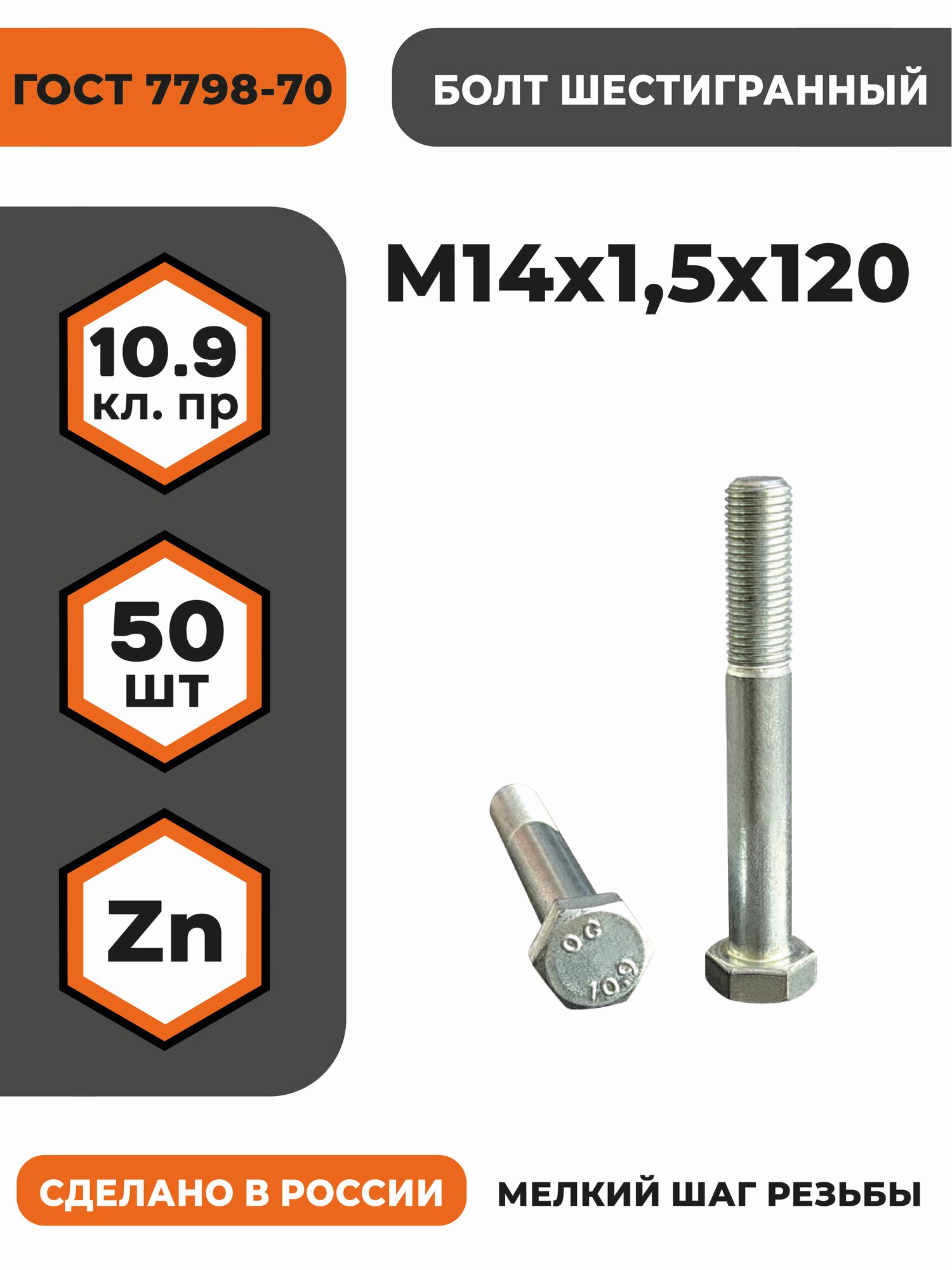 Болт М14х1,5х120 ГОСТ 7798-70 (DIN 960) кл. пр. 10.9 в цинке, высокопрочный, мелкая резьба, уп. — 50 шт.: сравнение цен, характеристики, фото, актуальное наличие и цены.