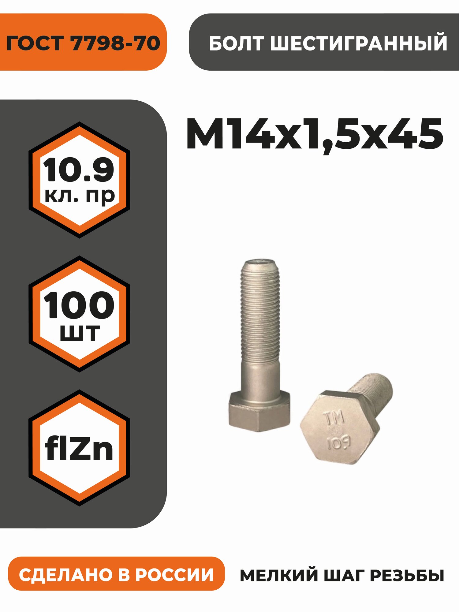 Купить Болт М14х1,5х45 ГОСТ 7798-70 (DIN 960) кл. пр. 10.9 в цинке, высокопрочный, мелкая резьба, уп. — 100 шт. с доставкой по всей России. Болт М14х1,5х45 ГОСТ 7798-70 (DIN 960) кл. пр. 10.9 в цинке, высокопрочный, мелкая резьба, уп. — 100 шт.: сравнение цен, характеристики, фото, актуальное наличие и цены.