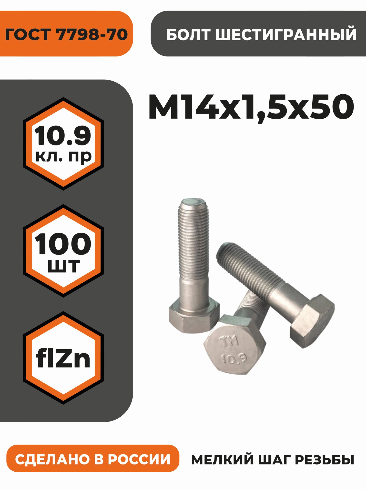 Болт М14х1,5х50 ГОСТ 7798-70 (DIN 960) кл. пр. 10.9 в цинке, высокопрочный, мелкая резьба, уп. — 100 шт.: сравнение цен, характеристики, фото, актуальное наличие и цены.