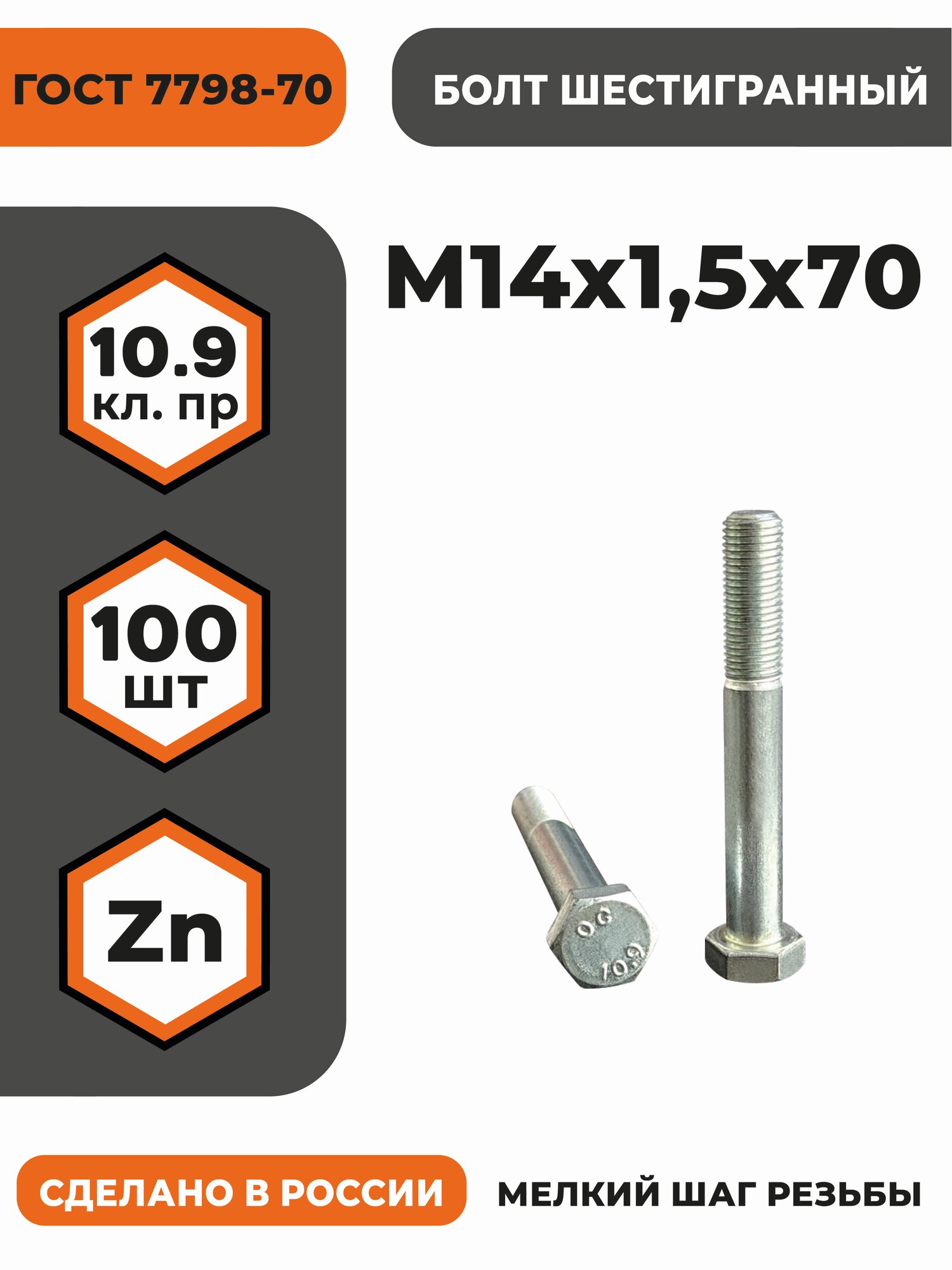Болт М14х1,5х70 ГОСТ 7798-70 (DIN 960) кл. пр. 10.9 в цинке, высокопрочный, мелкая резьба, уп. — 100 шт.: сравнение цен, характеристики, фото, актуальное наличие и цены.