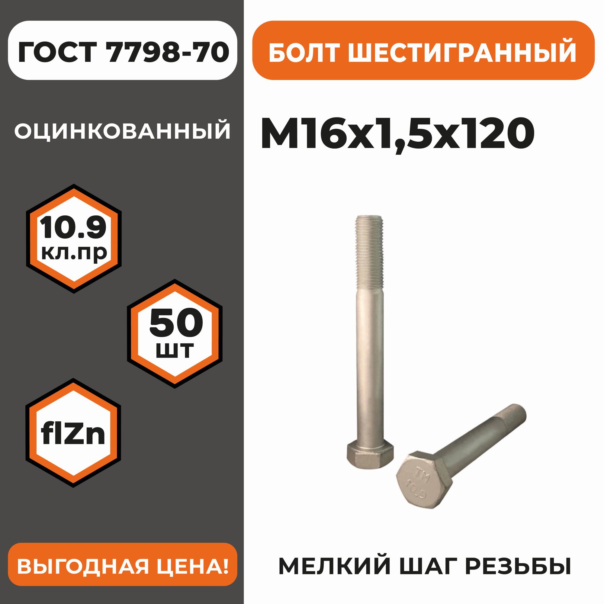 Болт М16х1,5х120 ГОСТ 7798-70 (DIN 960) кл. пр. 10.9 в цинке, высокопрочный, мелкая резьба, уп. — 50 шт.: сравнение цен, характеристики, фото, актуальное наличие и цены.