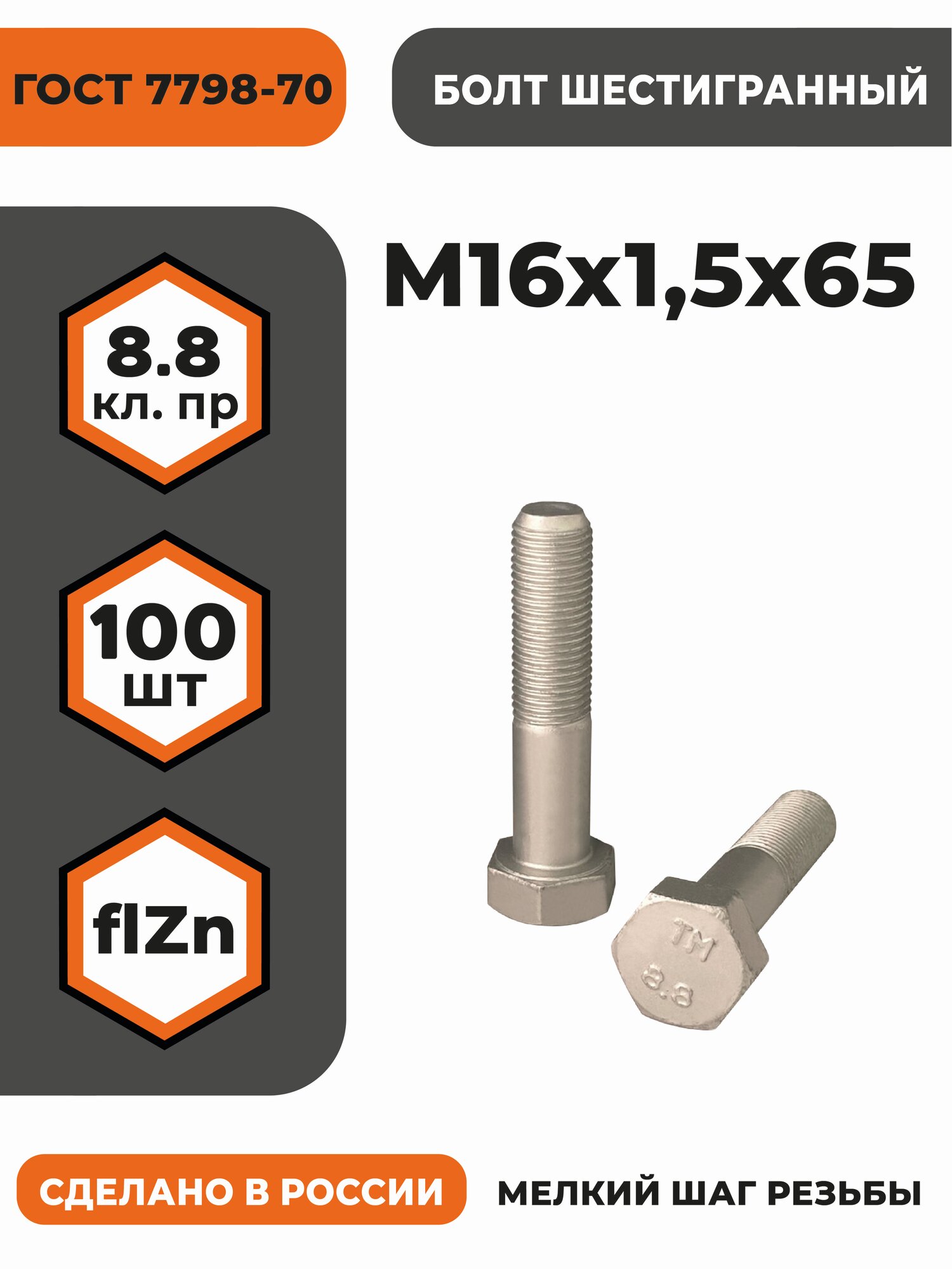 Болт М16х1,5х65 ГОСТ 7798-70 (DIN 960) кл. пр. 8.8 в цинке, высокопрочный, мелкая резьба, уп. — 100 шт.: сравнение цен, характеристики, фото, актуальное наличие и цены.