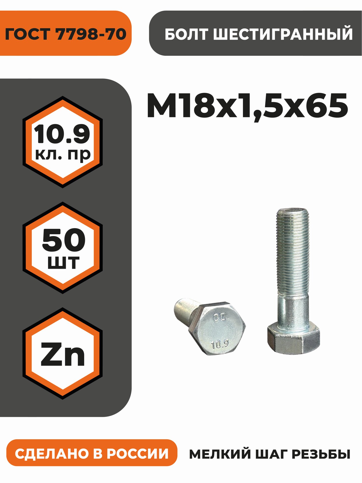 Болт М18х1,5х65 ГОСТ 7798-70 КП 10.9, в цинке, высокопрочный, мелкая резьба, уп. — 50 шт.: сравнение цен, характеристики, фото, актуальное наличие и цены.