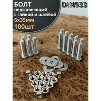 Купить Болт нержавеющий 6х35 мм DIN933 с гайкой и шайбой, 100шт. с доставкой по всей России. Болт нержавеющий 6х35 мм DIN933 с гайкой и шайбой, 100шт.: сравнение цен, характеристики, фото, актуальное наличие и цены.