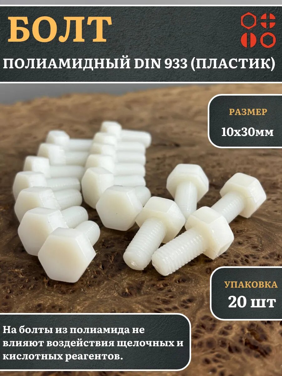 Купить Болт полиамидный 10х30 мм DIN 933 (пластик), 20 шт. с доставкой по всей России. Болт полиамидный 10х30 мм DIN 933 (пластик), 20 шт.: сравнение цен, характеристики, фото, актуальное наличие и цены.