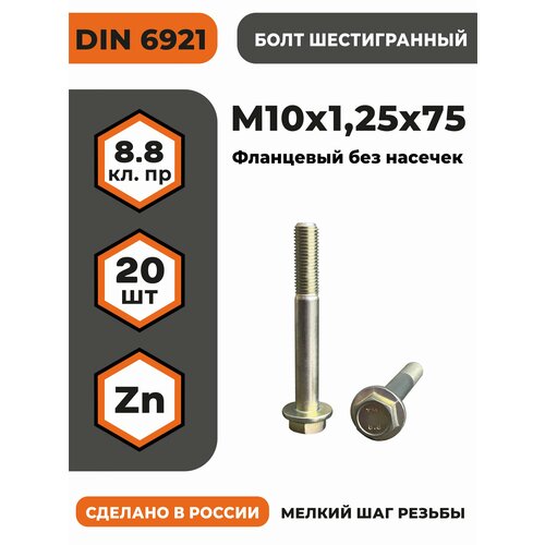 Купить Болт с фланцем М10х1,25х75 DIN 6921, КП 8.8 оц, без насечек, мелкий шаг резьбы, уп. — 20 шт. с доставкой по всей России. Болт с фланцем М10х1,25х75 DIN 6921, КП 8.8 оц, без насечек, мелкий шаг резьбы, уп. — 20 шт.: сравнение цен, характеристики, фото, актуальное наличие и цены.